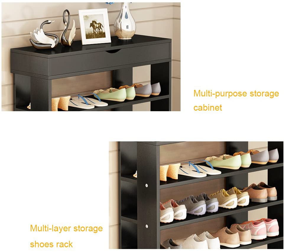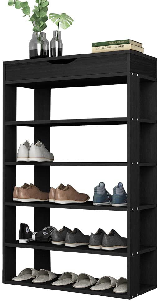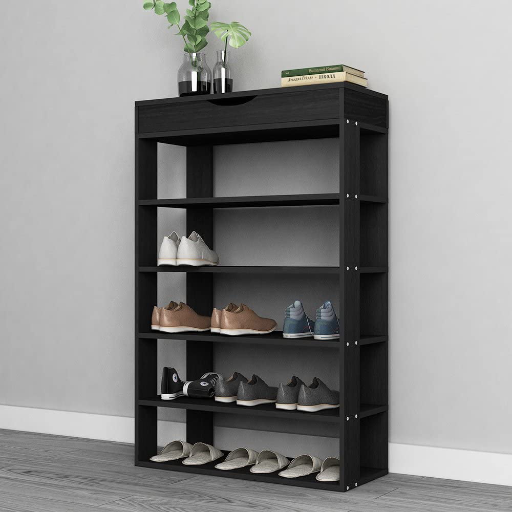 SogesPower Wooden Shoe Rack 5 Tier Shoe Storage Shelf Free Standing Shoe Organizer for Entryway. Hallway. Black