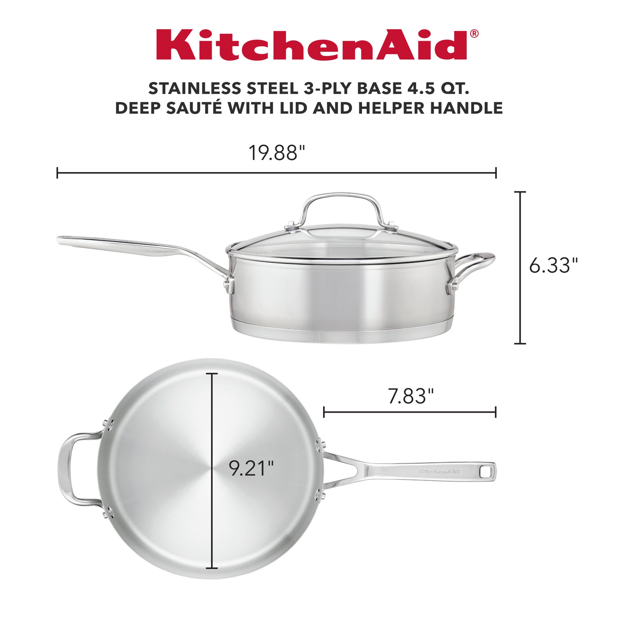 KitchenAid 4.5 Quart 3-Ply Base Stainless Steel Induction Saute Pan with Helper Handle and Lid