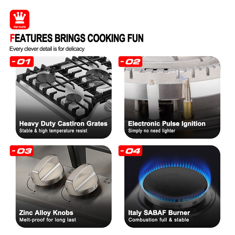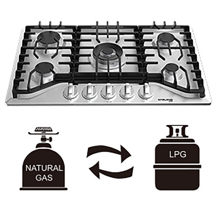 Gaslandchef 30” Gas 5 Burner Cooktop with Dual Size Power Burner