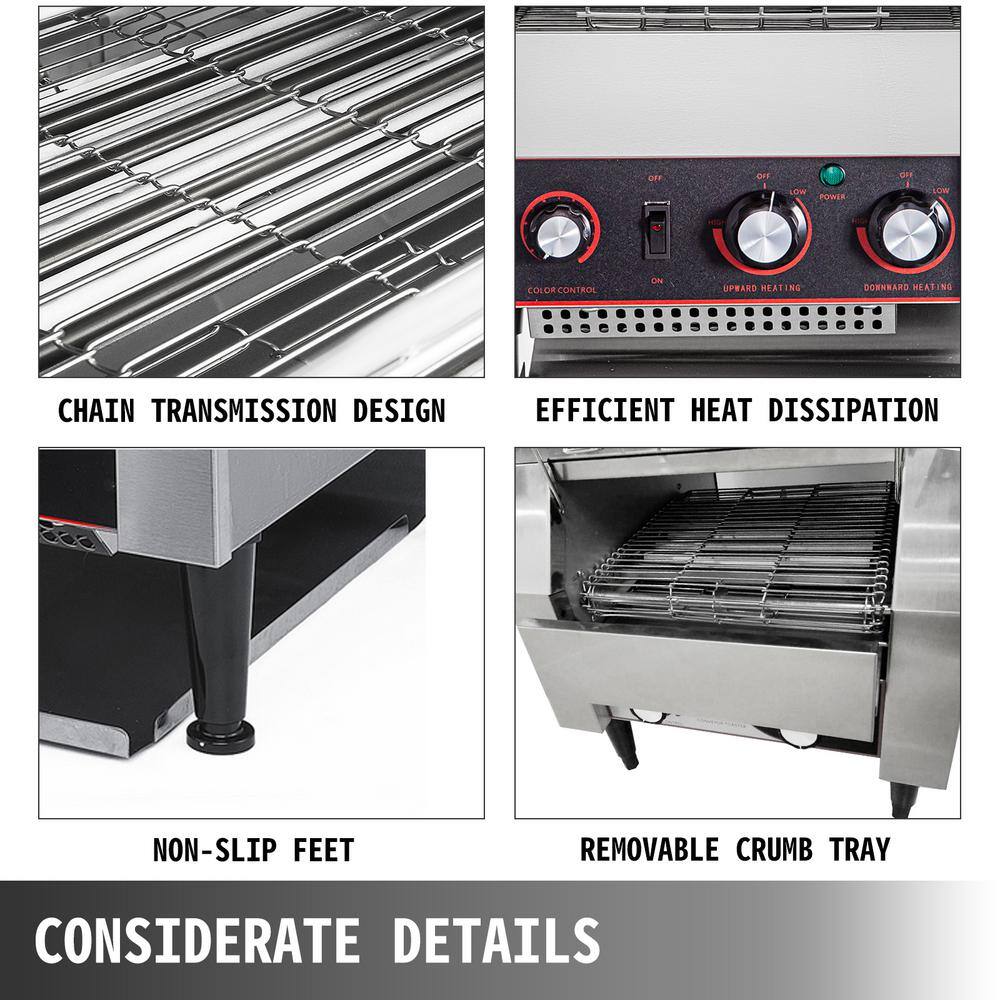VEVOR 2240-Watt Commercial Conveyor Toaster Stainless Steel Heavy Duty Conveyor Belt Toaster with Double Heating Tubes