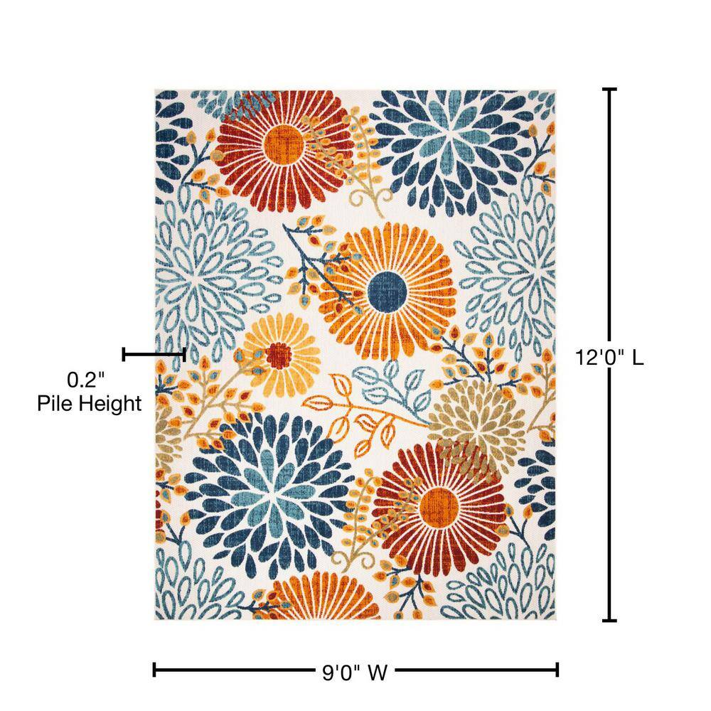 SAFAVIEH Cabana Cream/Red 9 ft. x 12 ft. Floral Leaf Indoor/Outdoor Patio Area Rug