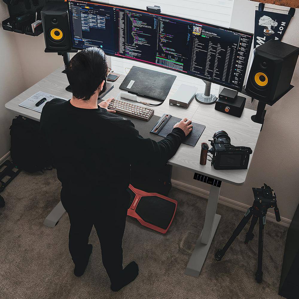 LACOO 55 in. White Electric Standing Desk Height Adjustable Wooden Workstation