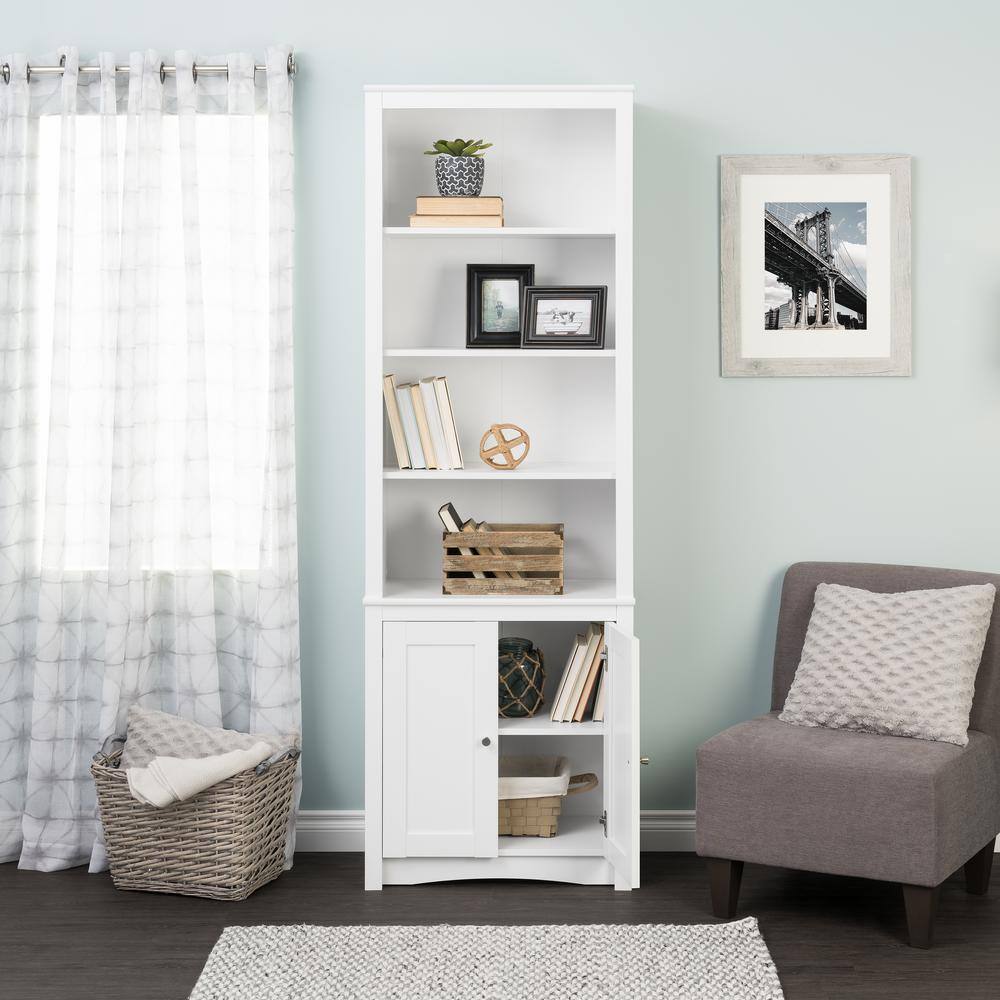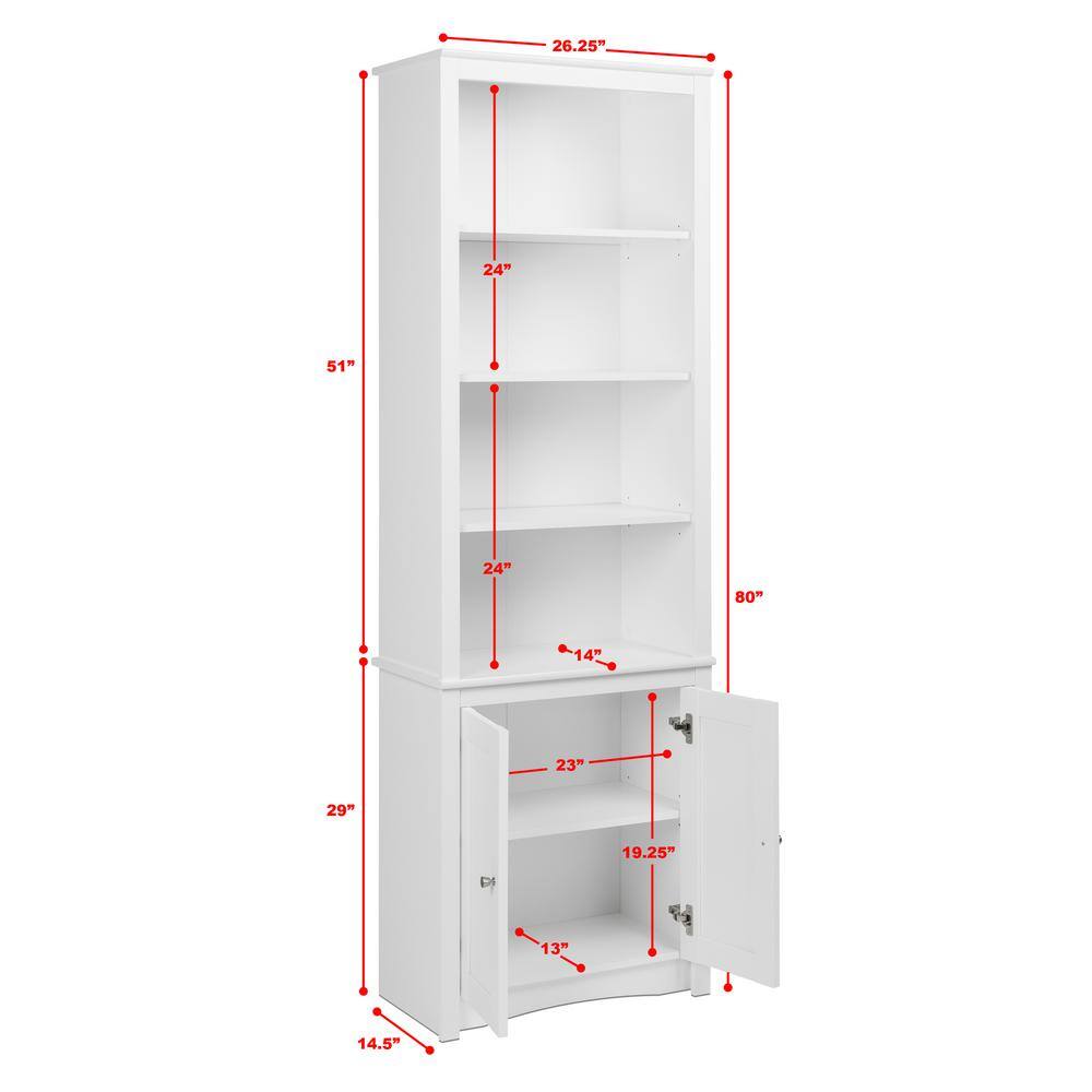 Prepac 80 in. White Wood 6-shelf Standard Bookcase with Doors