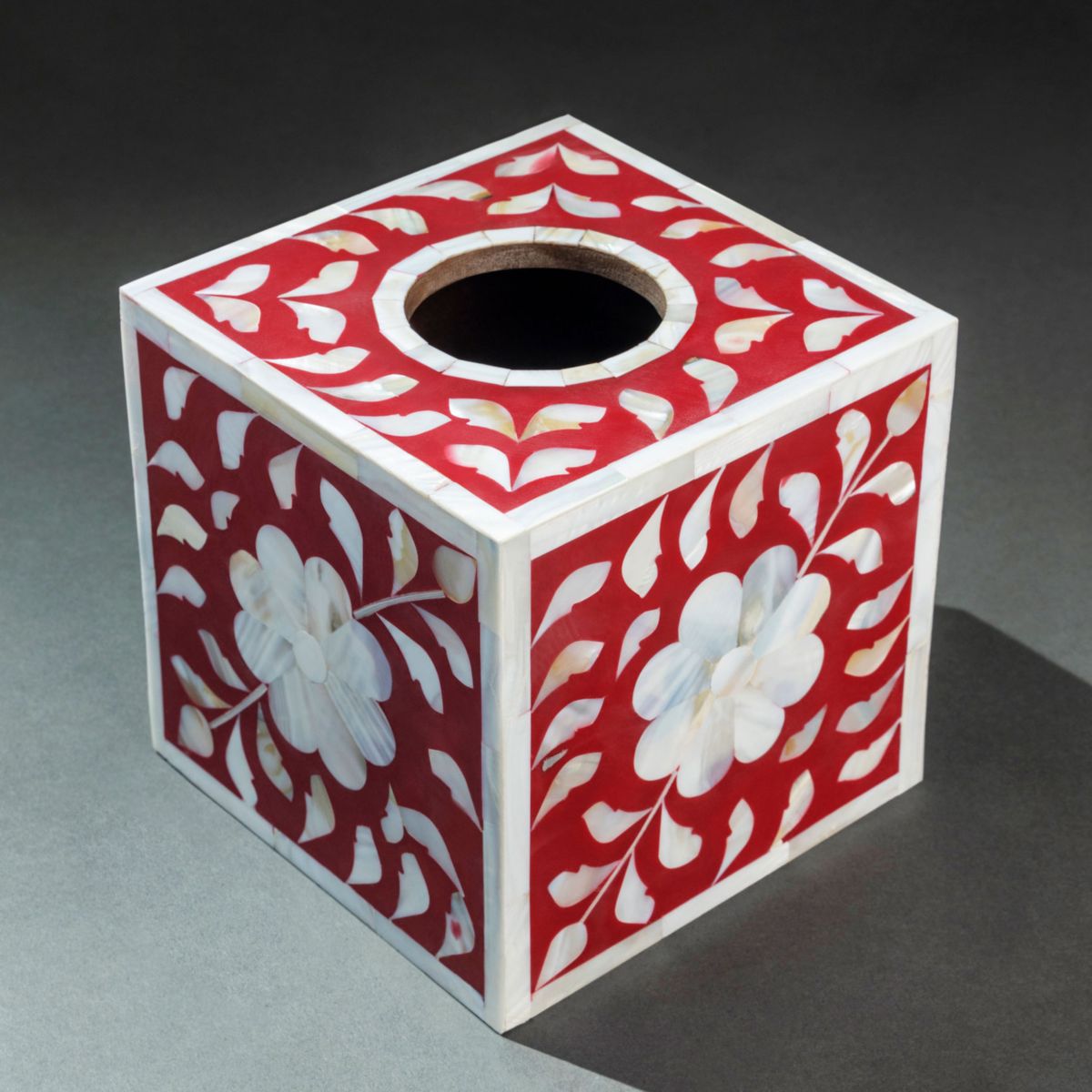 GAURI KOHLI Jodhpur Mother of Pearl Tissue Box Cover - Burgundy