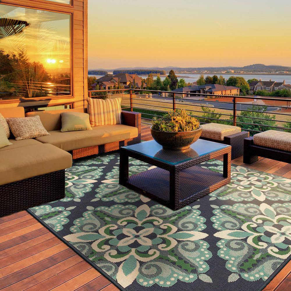 Nicole Miller Patio Country Danica Black/Gray 9 ft. x 12 ft. Geometric Indoor/Outdoor Area Rug