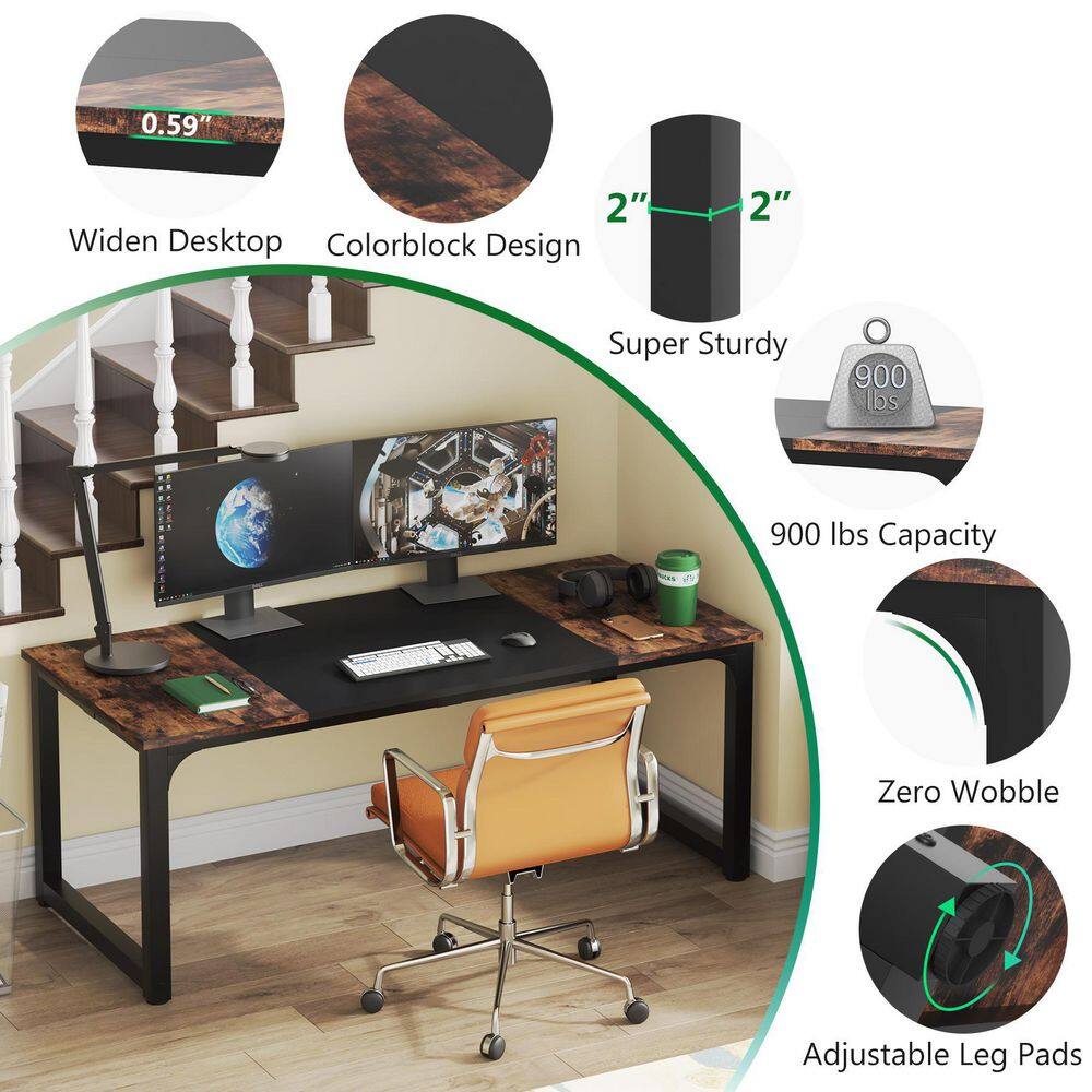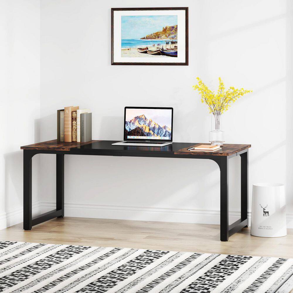 TRIBESIGNS WAY TO ORIGIN Halseey 70.8 in. W Brown Computer Desk Particle Board Wood Home Office Workstation Boardroom Desk