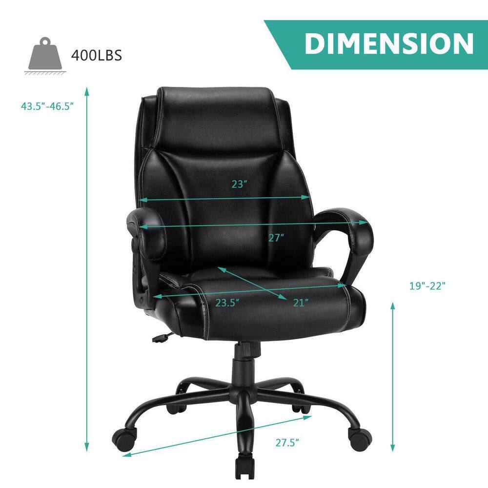 Costway Black 400 lbs. Big and Tall Leather Office Chair Adjustable High Back Task Chair