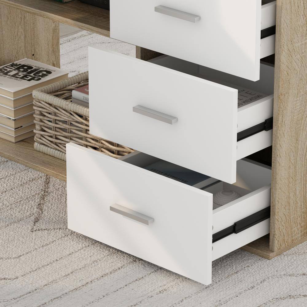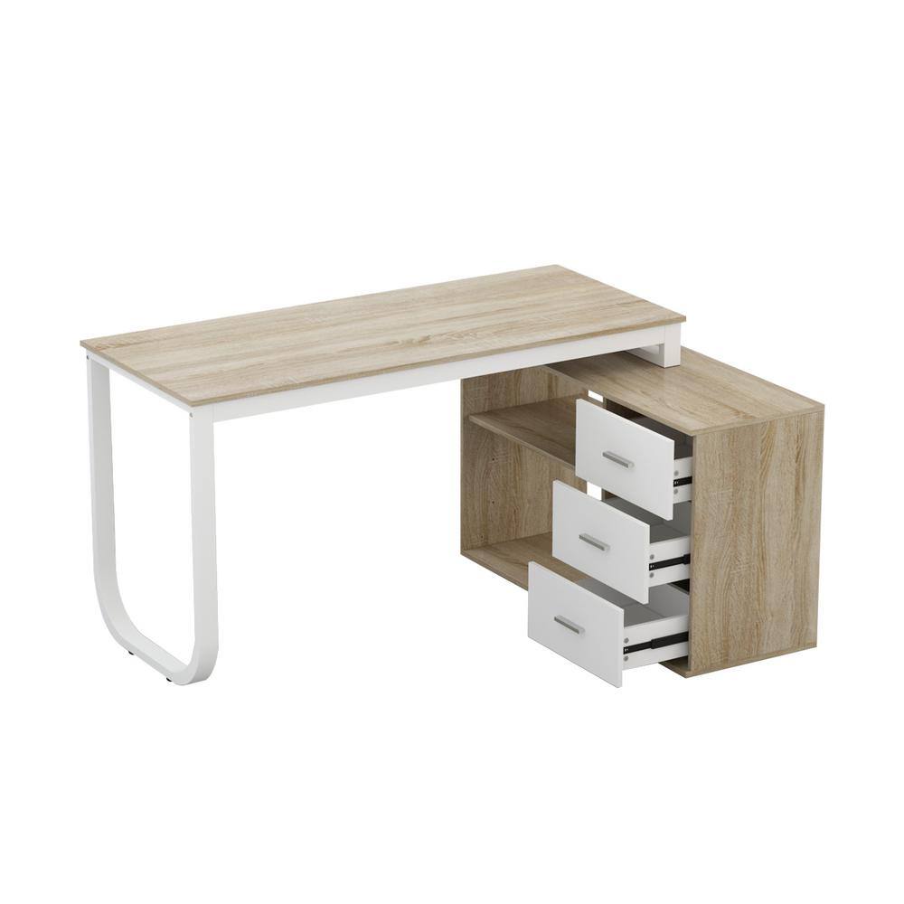 FUFU&GAGA 55.1 in. L-Shaped Beige Wood Computer Desk Writing Desk Office Executive Desk W/Removable Tabletop. Shelves. 3-Drawers