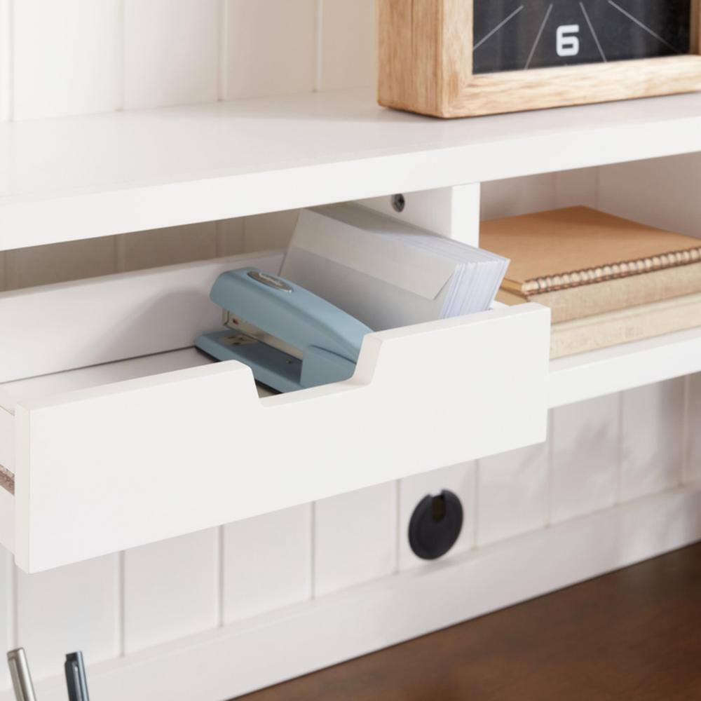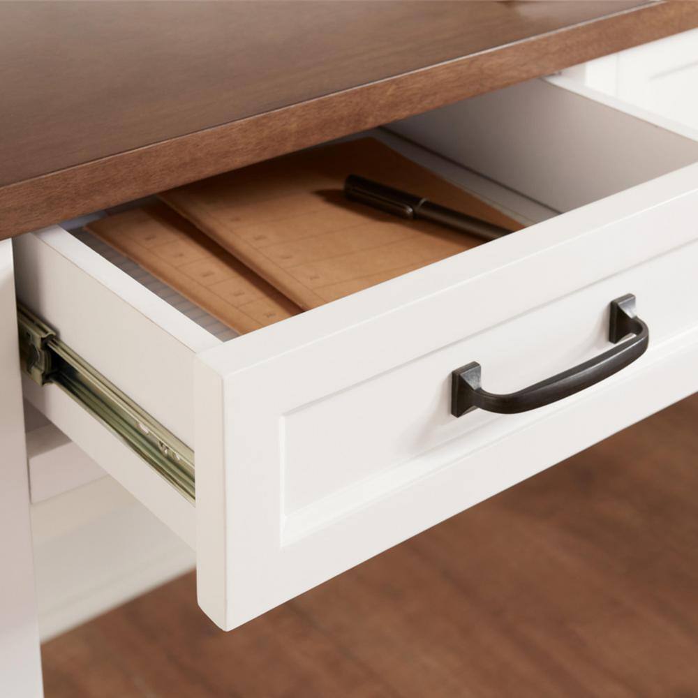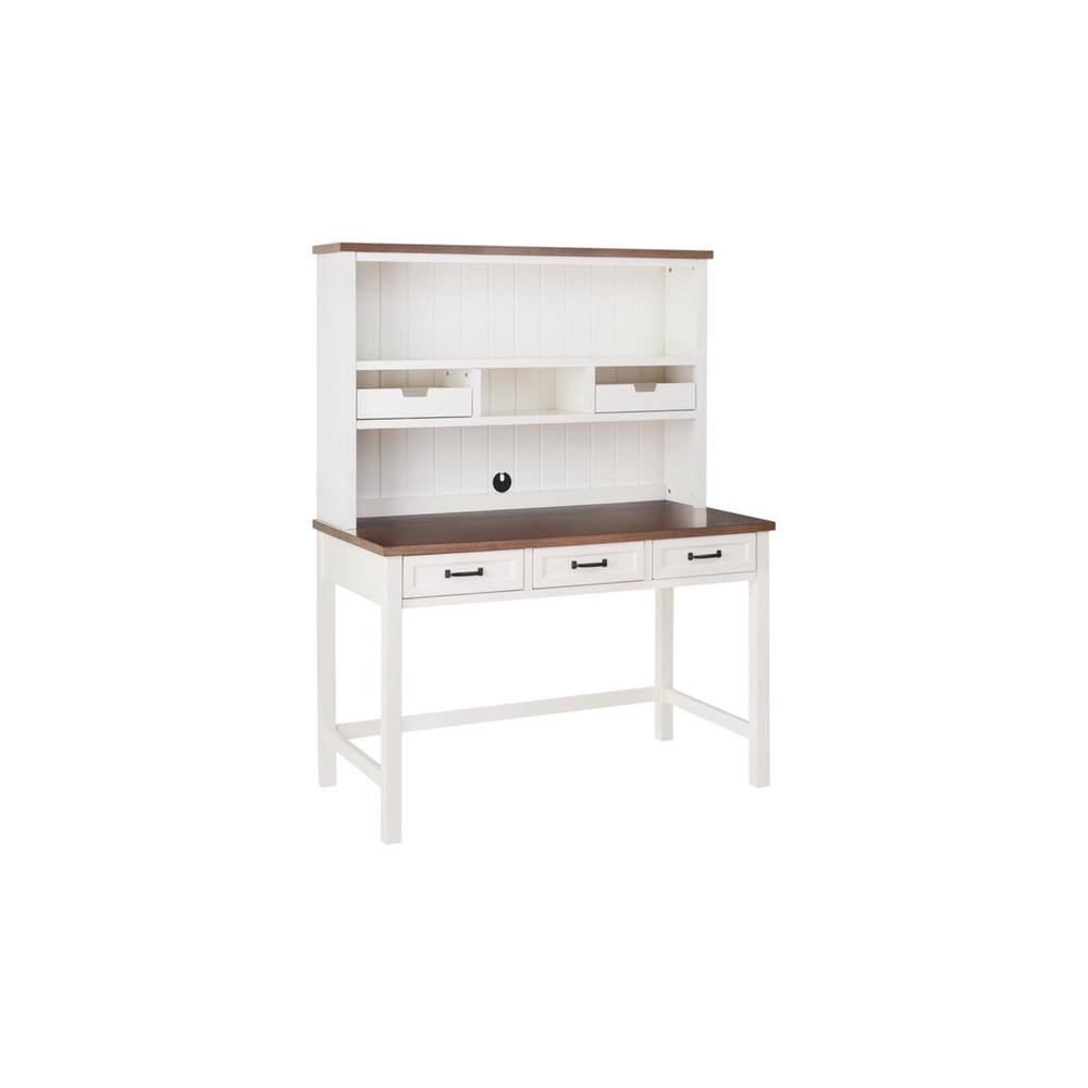 Home Decorators Collection 48 in. Rectangular White/Haze Wood 5-Drawer Writing Desk with Open Shelf Hutch