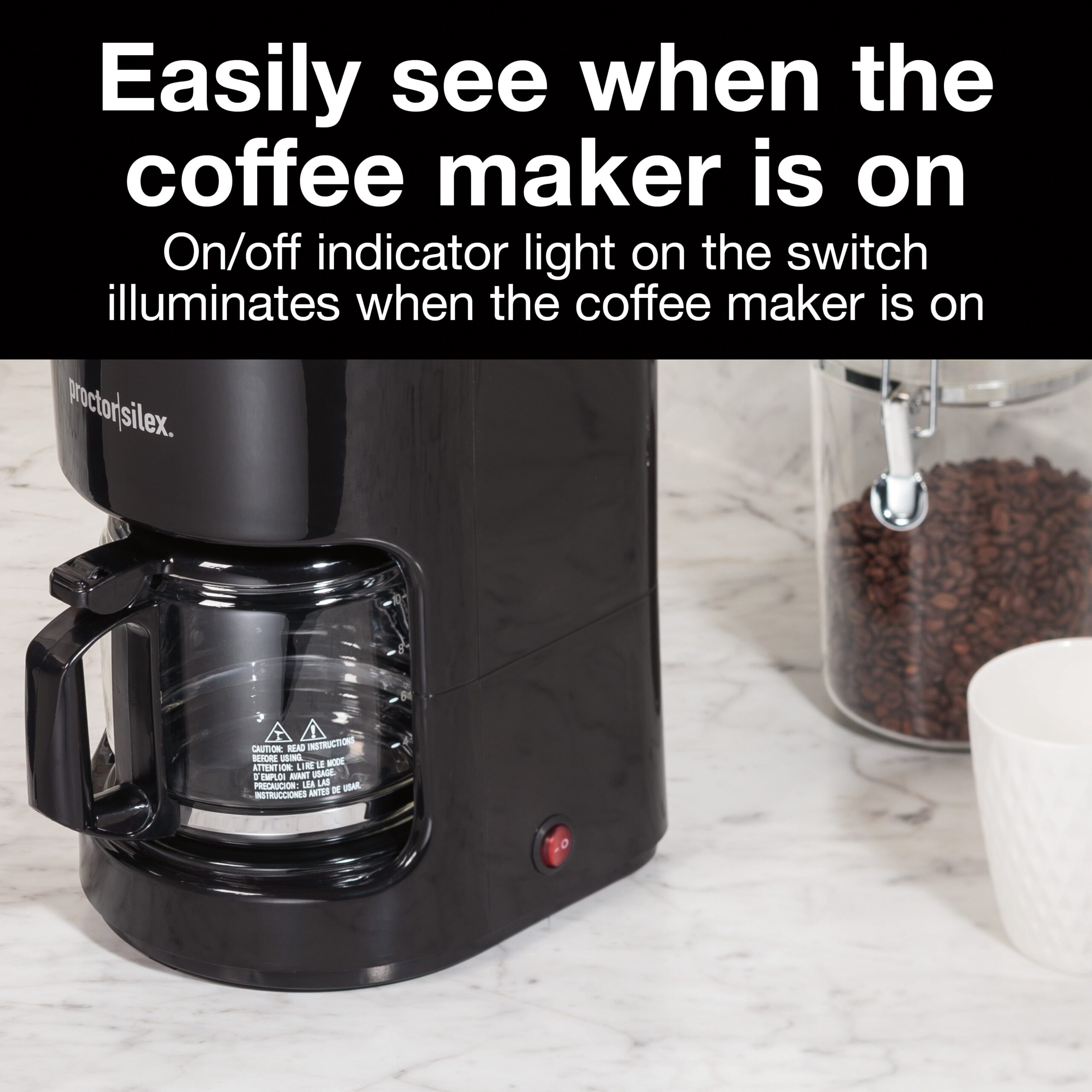 Proctor Silex Front Fill Compact 12 Cup Coffee Maker. Glass Carafe. Compatible with Smart Plugs. Black. 43680PS