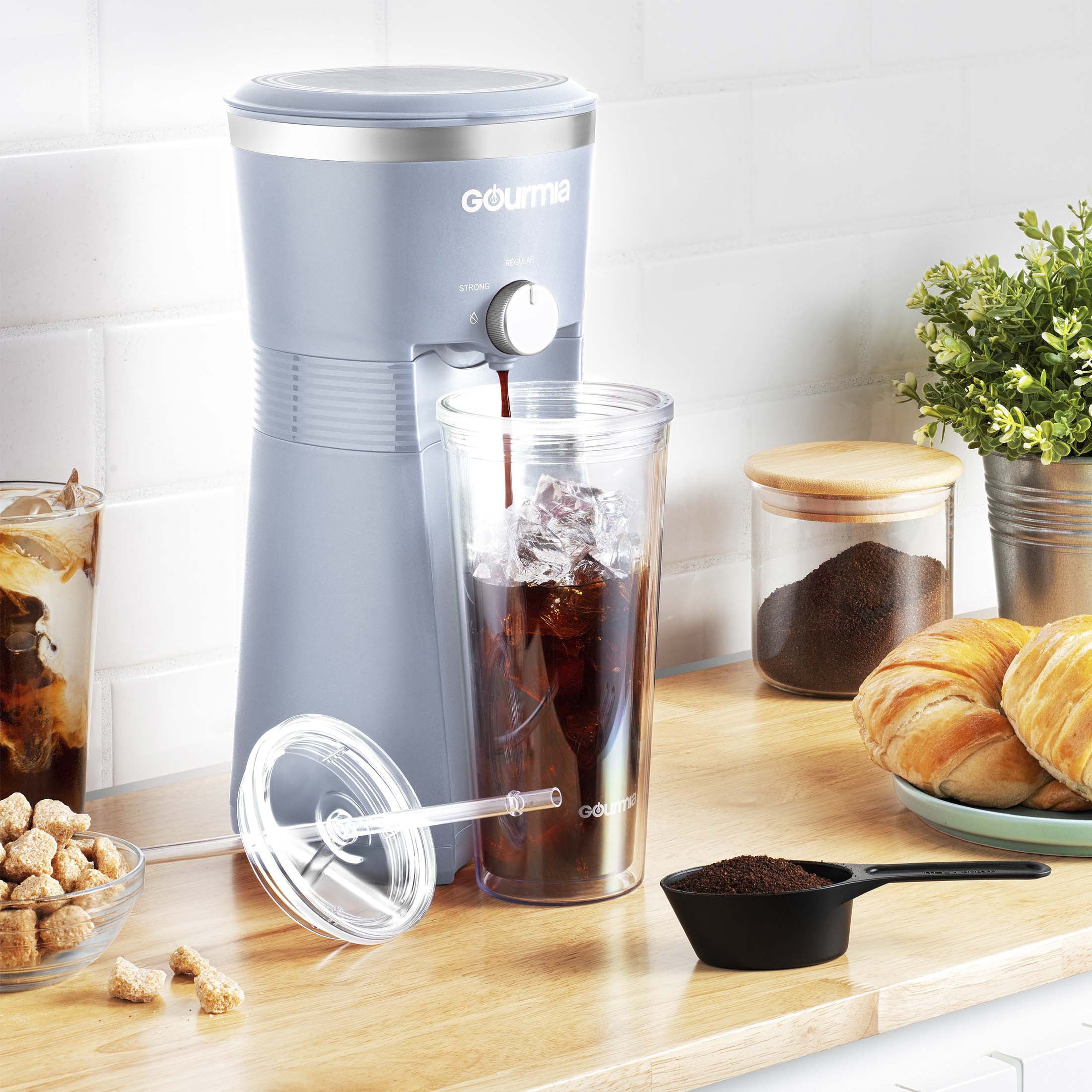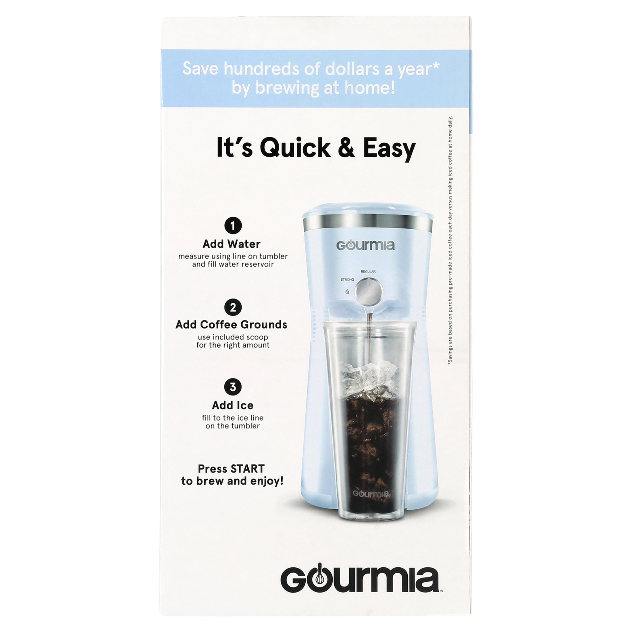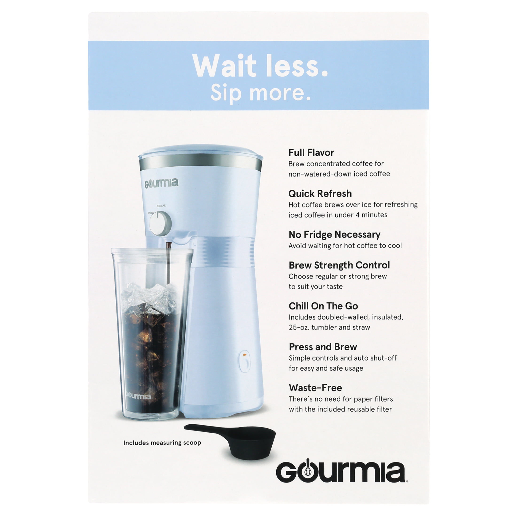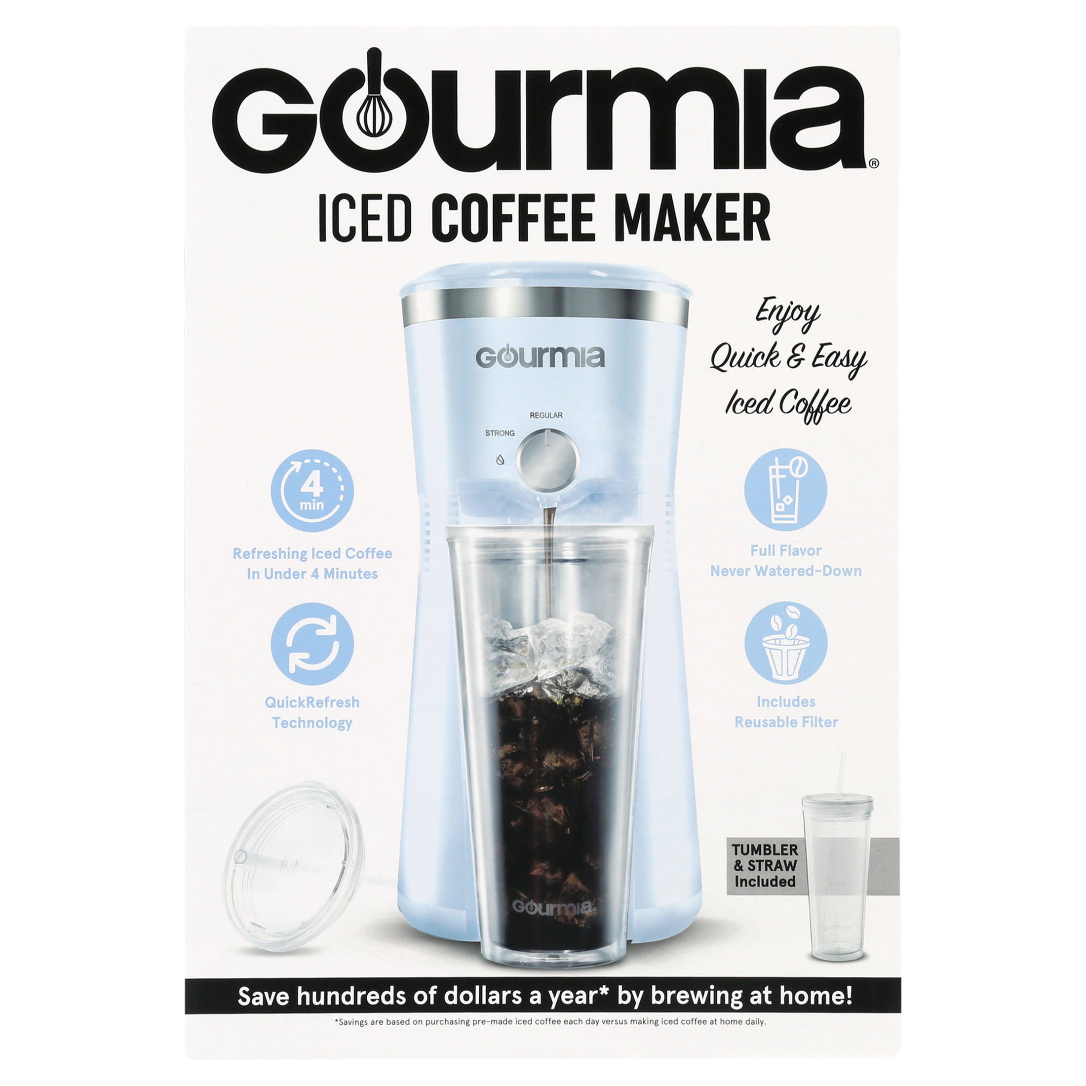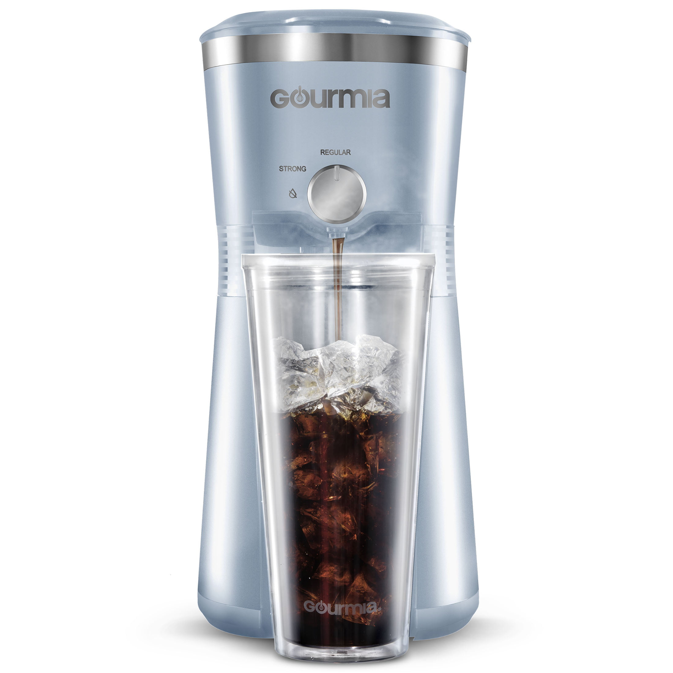 Gourmia Iced Coffee Maker with 25 fl oz. Reusable Tumbler. Blue