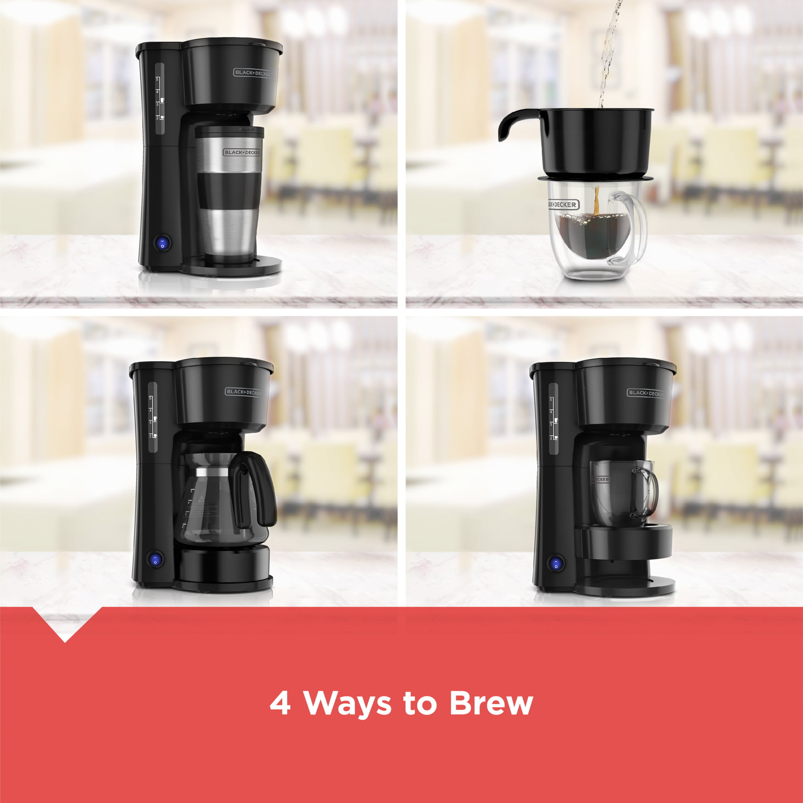 BLACK+DECKER 4-in-1 Coffee Station 5-Cup Coffee Maker in Stainless Steel Black