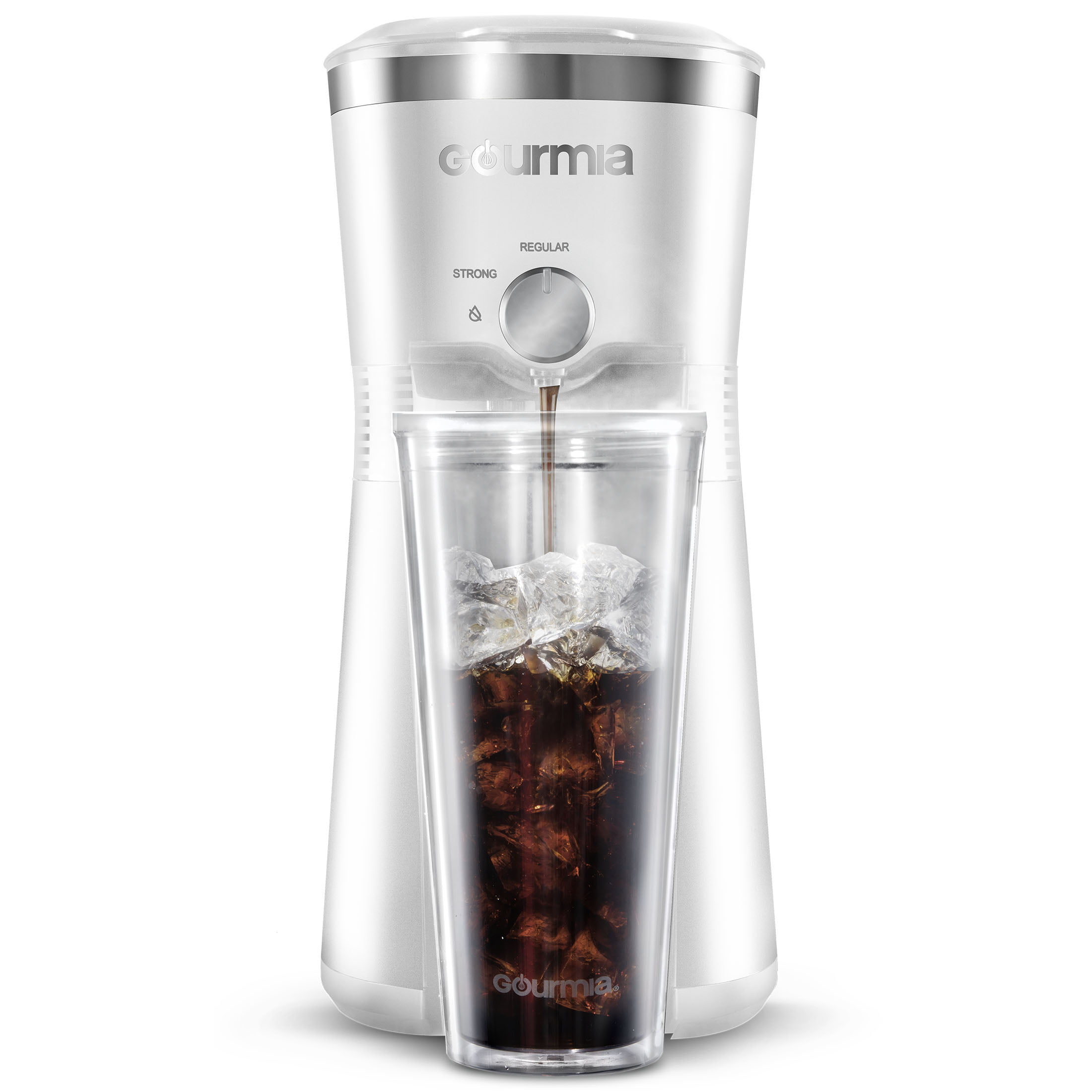 Gourmia Iced Coffee Maker with 25 fl oz. Reusable Tumbler. White