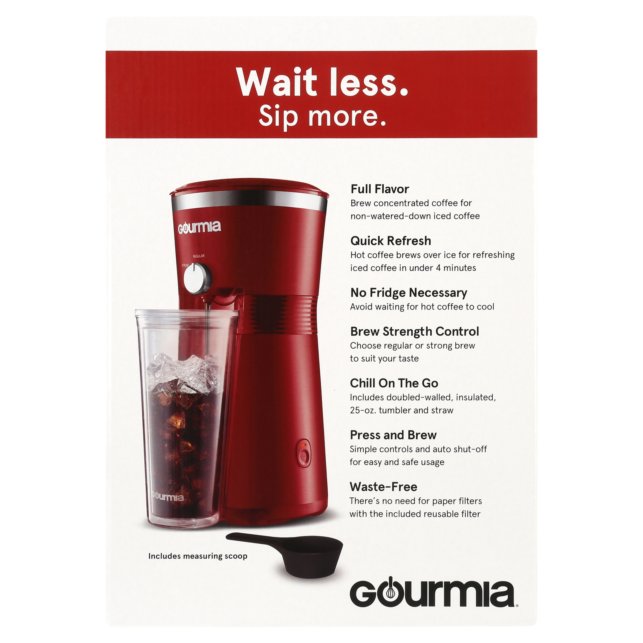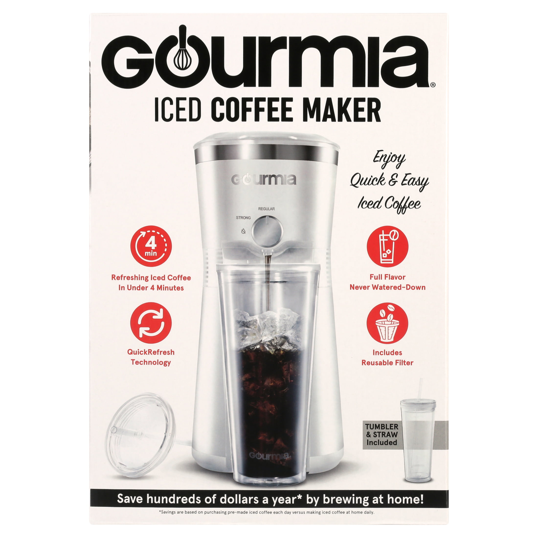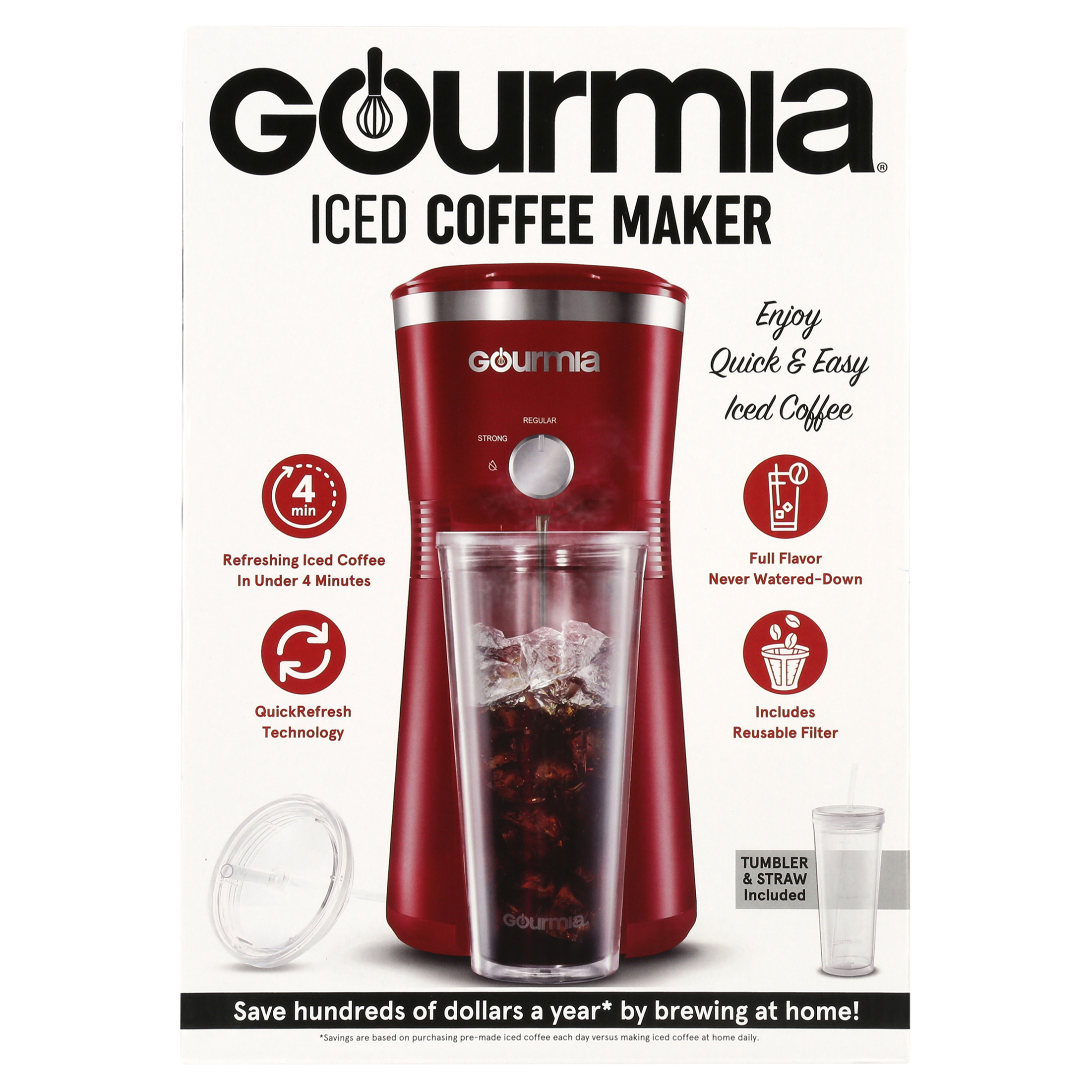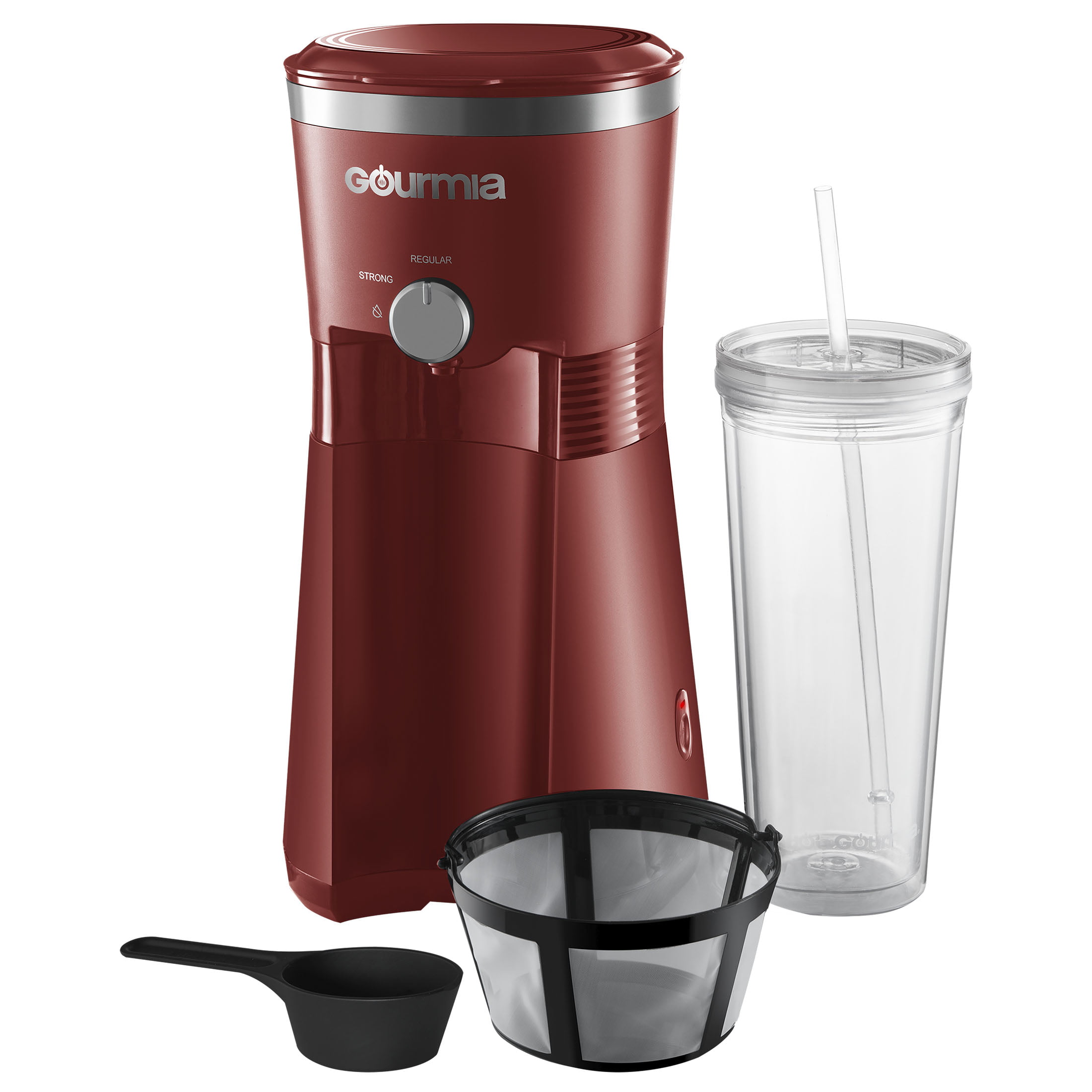 Gourmia Iced Coffee Maker with 25 fl oz. Reusable Tumbler. Red