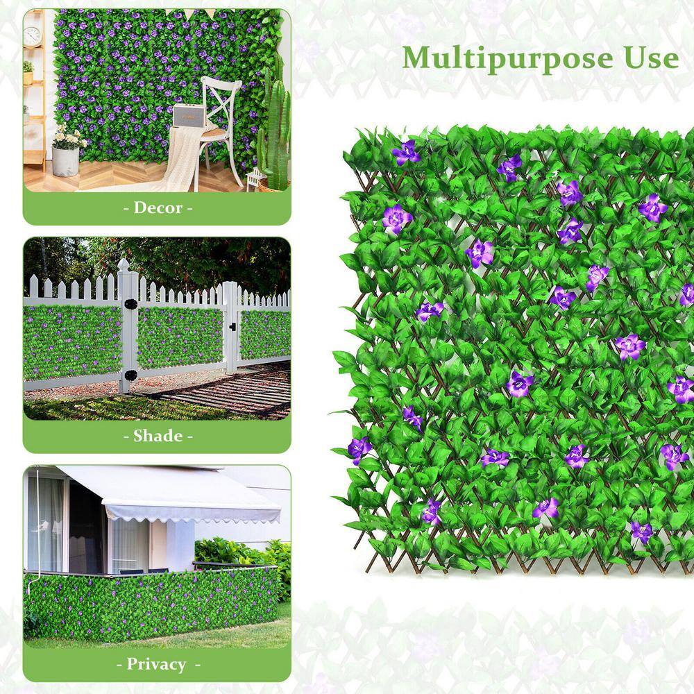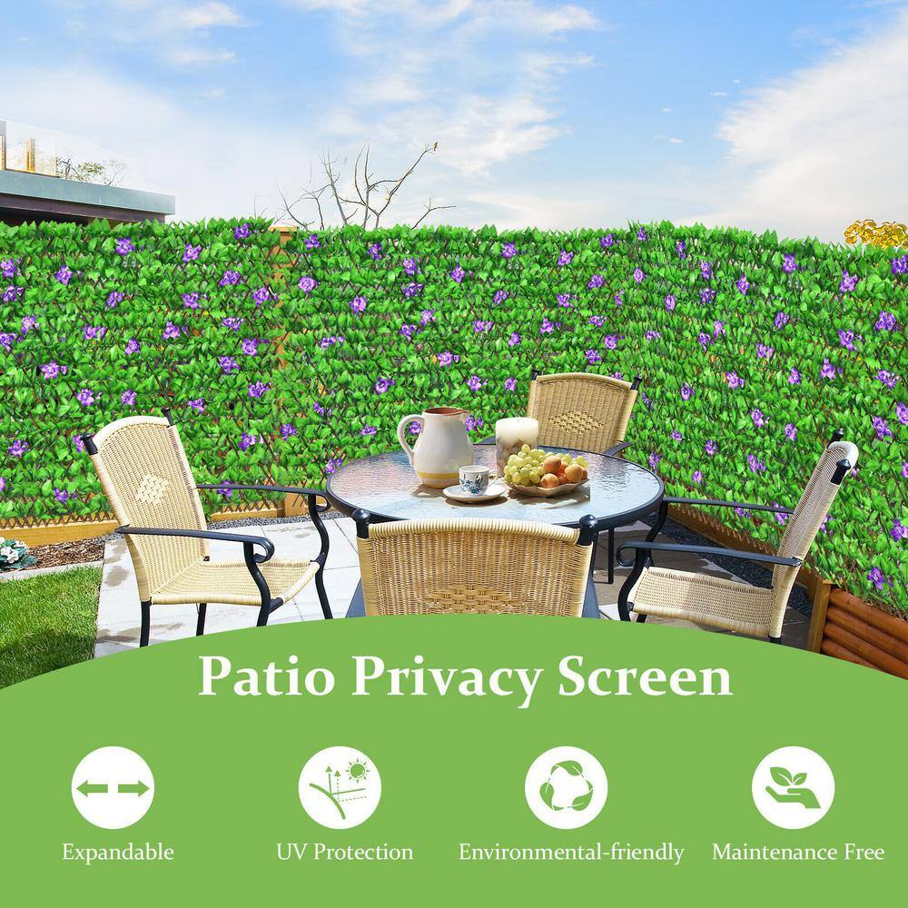 WELLFOR NP-HPY-10481PU-4 79 in. W x 39 in. D Willow and Polyester Faux Ivy Privacy Garden Fence with Purple Flower (4-Piece)