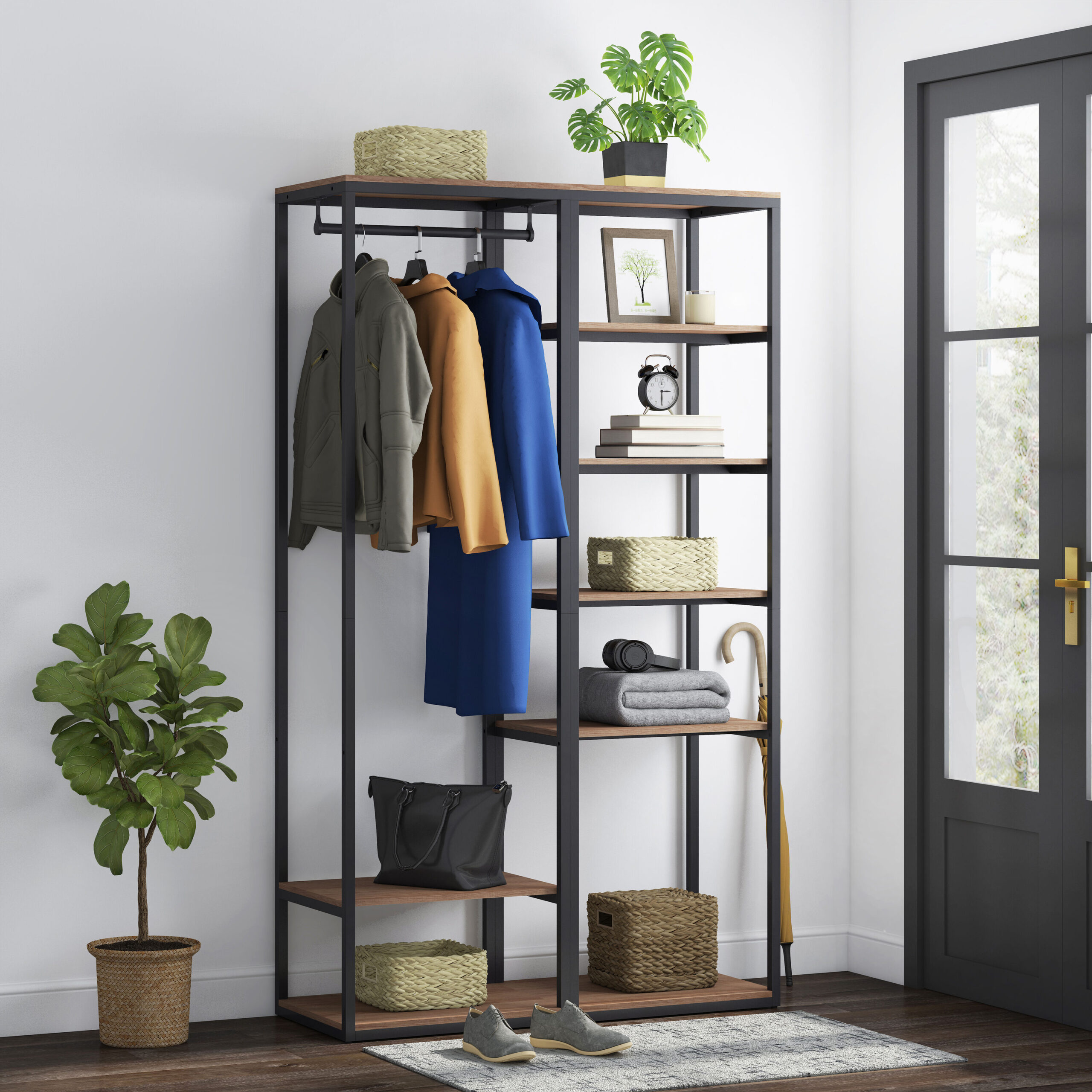 Style Selections Camryn 23.75-in W x 18-in D x 82-in H Brown Solid Wood Closet Tower