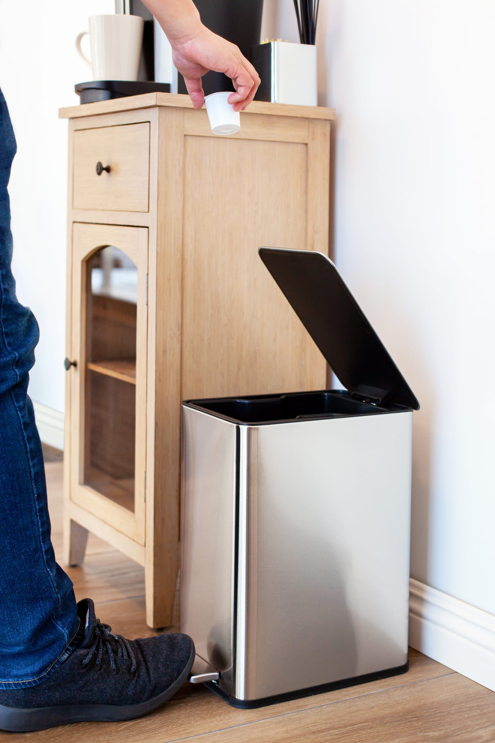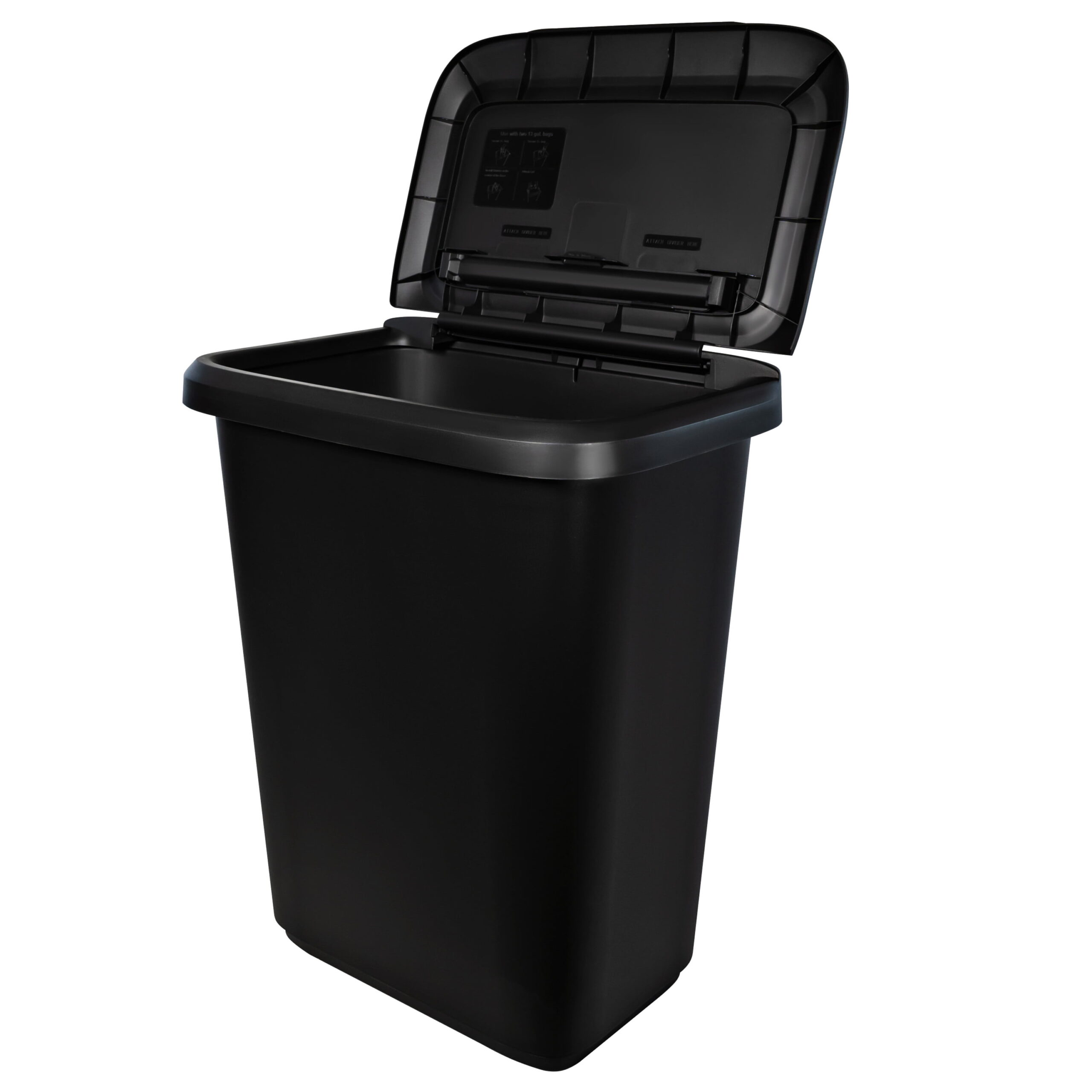 Hefty 20 Gallon Trash Can. Plastic Dual-Function Kitchen Trash Can. Black