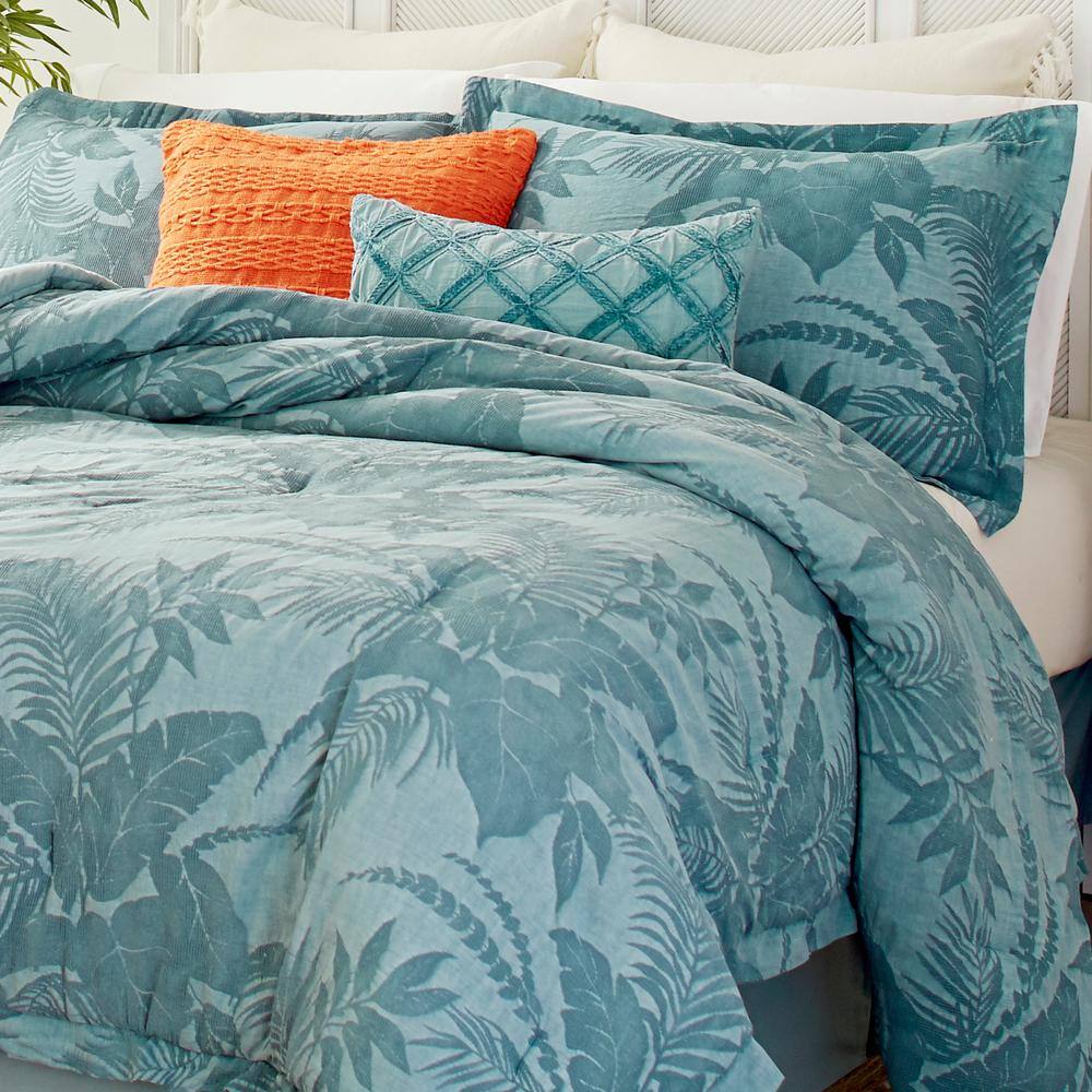 Tommy Bahama Blue Abalone 4-Piece Blue Botanical Cotton King Comforter Set