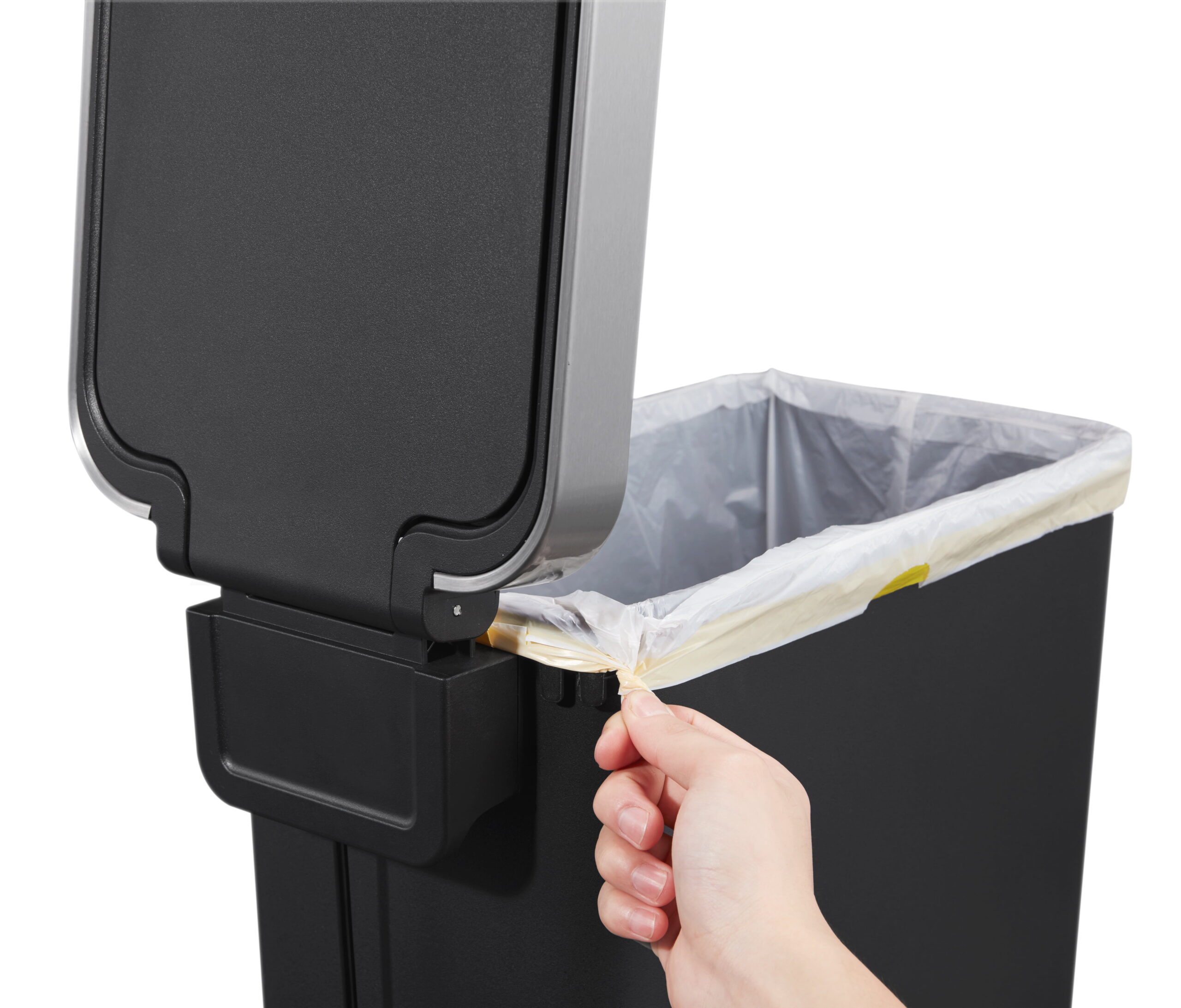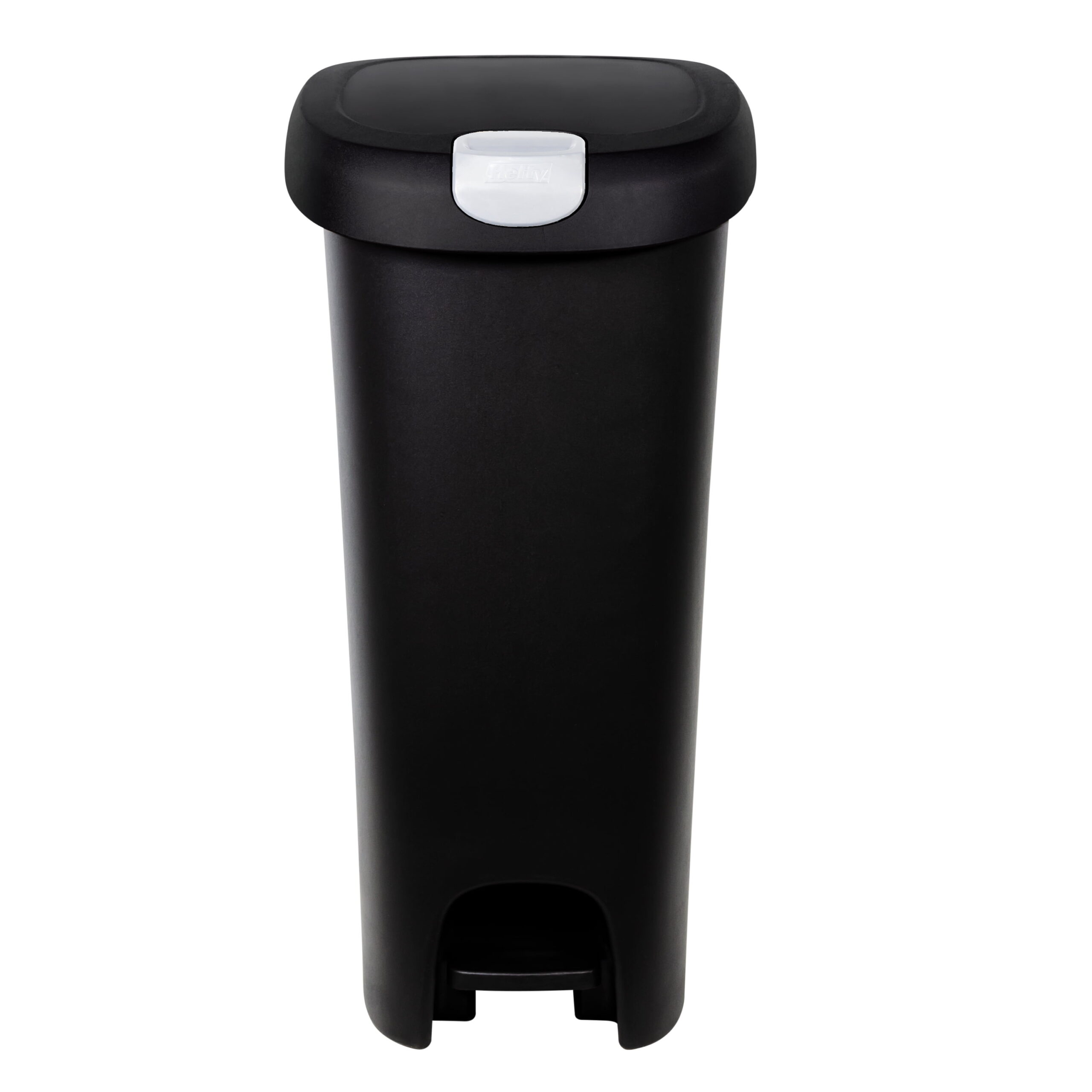 Hefty 12 Gallon Trash Can. Plastic Lockable Slim Step On Kitchen Trash Can. Black
