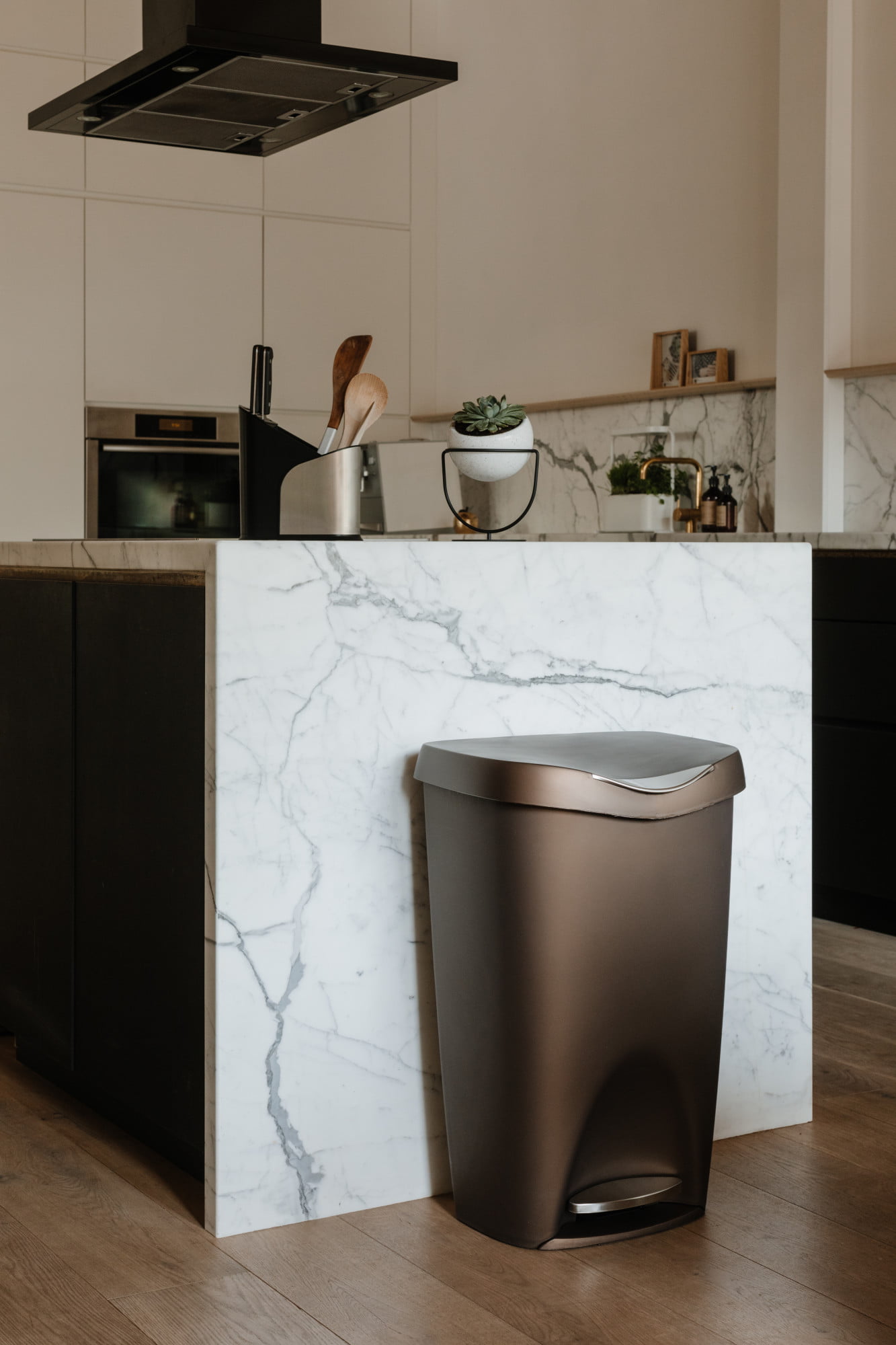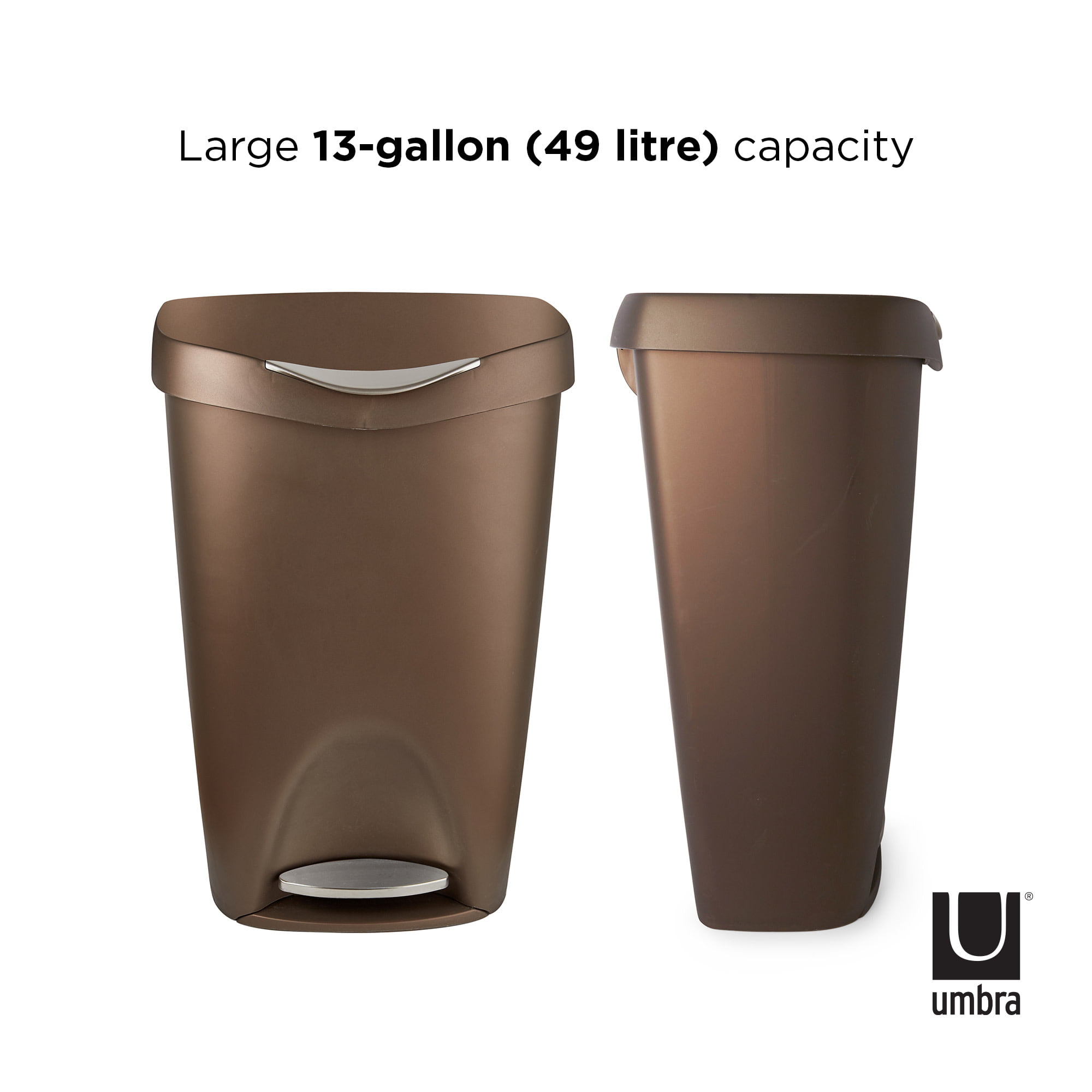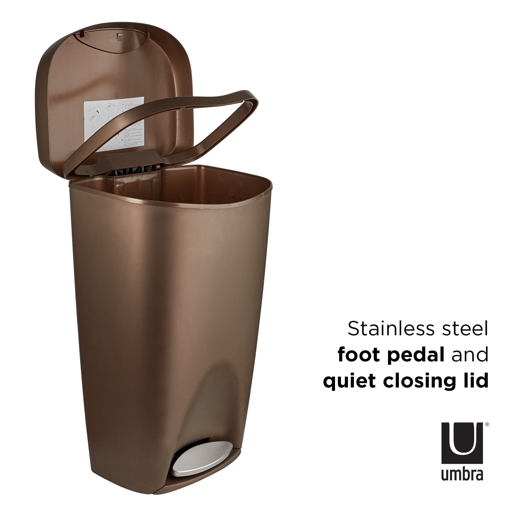Umbra 13 gal Brim Plastic Step Soft Close Lid Kitchen Trash Can. Bronze