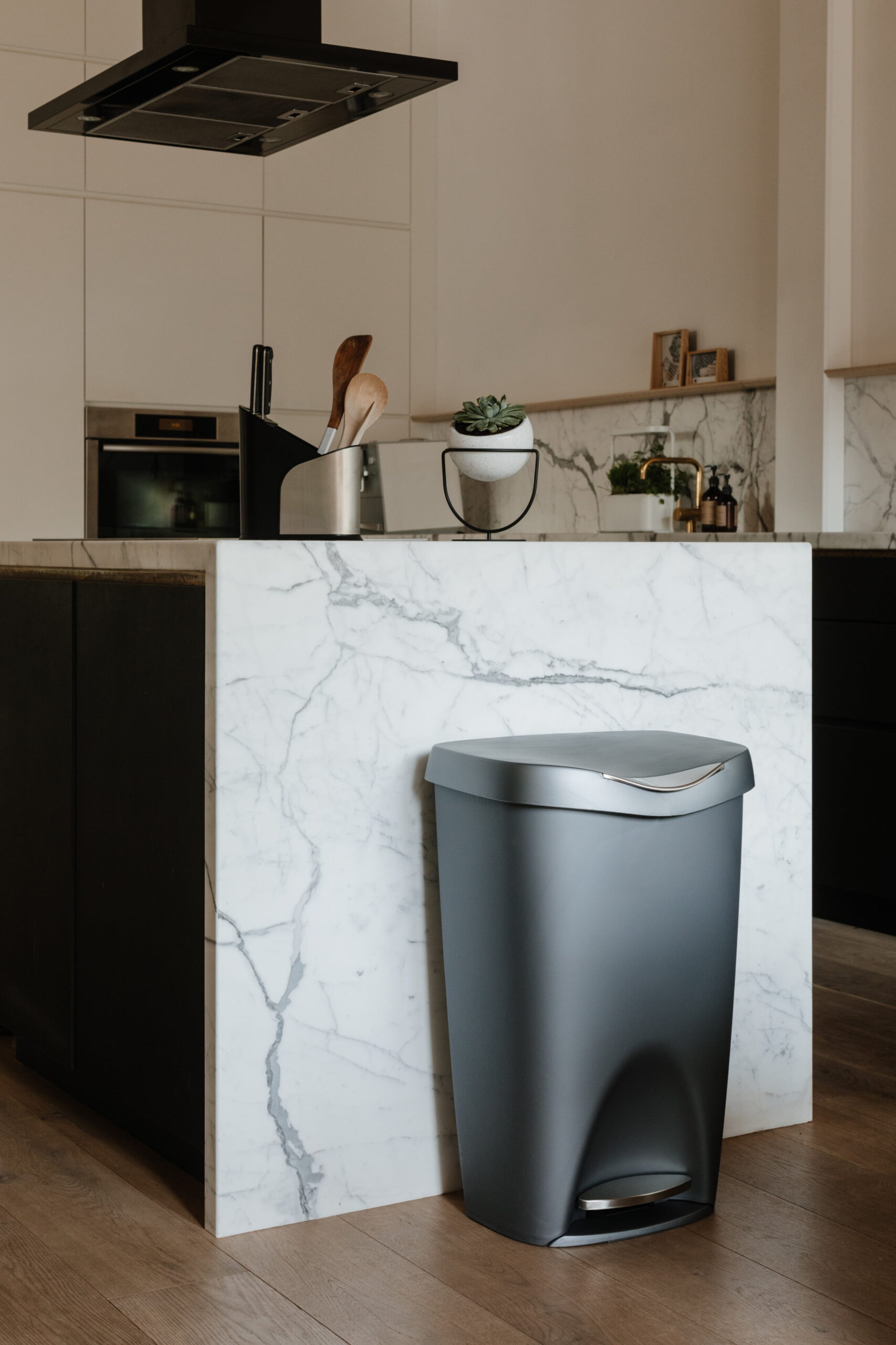 Umbra 13 gal Brim Plastic Step Soft Close Lid Kitchen Trash Can. Nickel