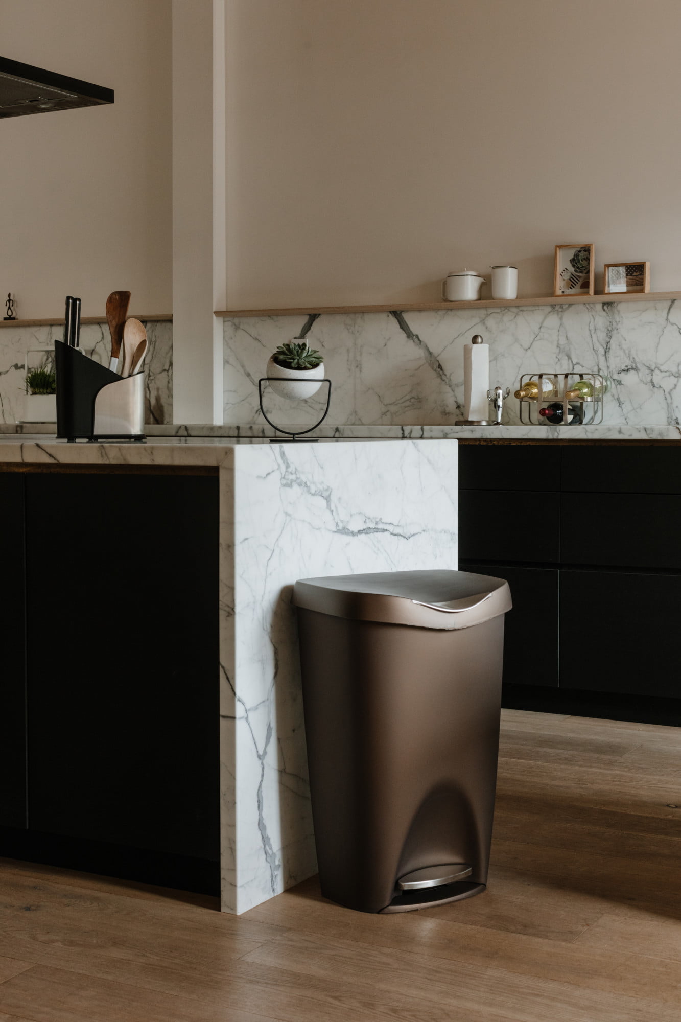 Better Homes & Gardens 10.5 Gallon Trash Can. Plastic Slim Step On Kitchen Trash Can. Black