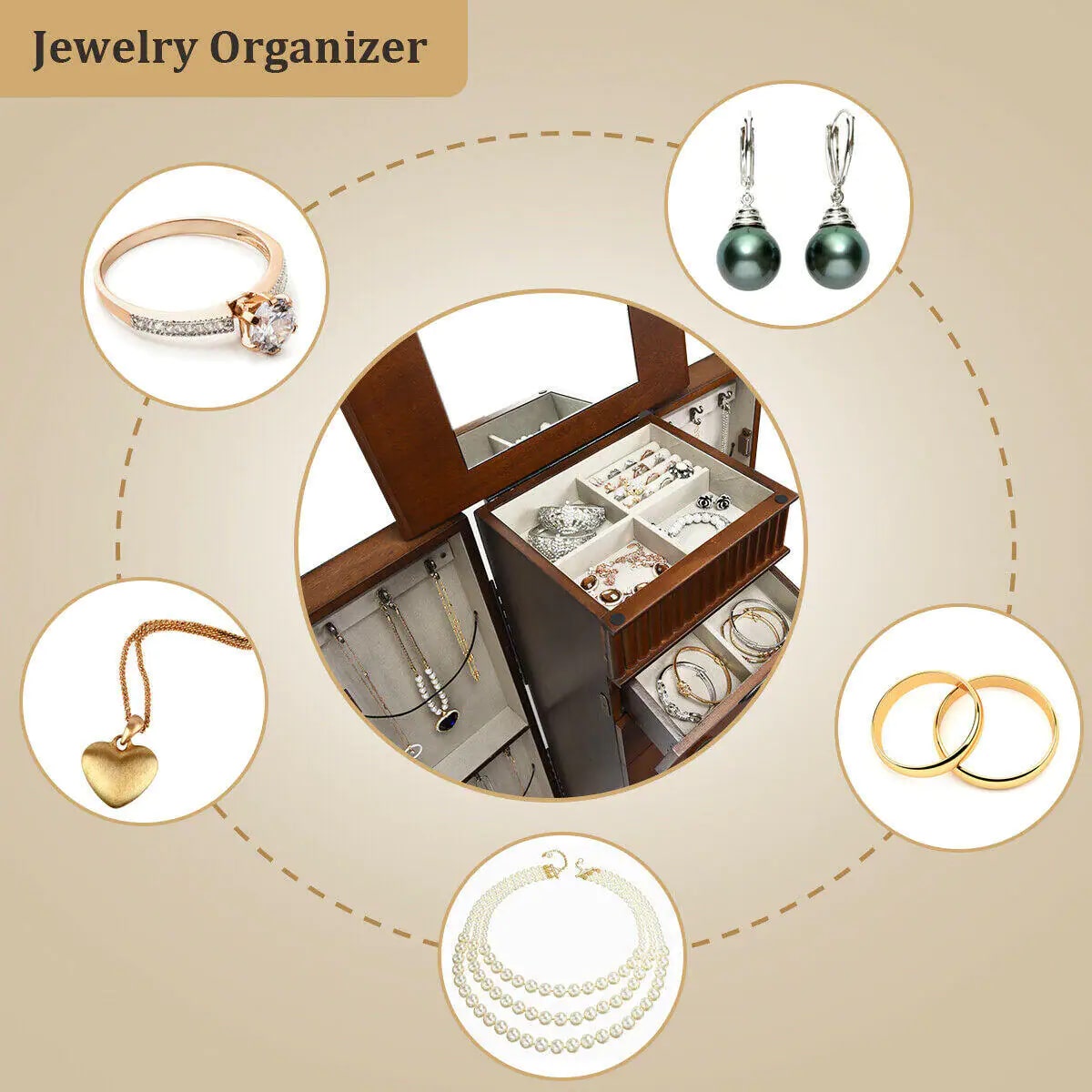 Jewelry Cabinet Armoire Jewelry Box Storage Chest Stand Organizer Wood Christmas Gift