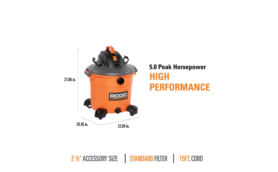 RIDGID HD1640 16 Gal. 5.0-Peak HP NXT Wet/Dry Shop Vacuum with Filter. Hose and Accessories