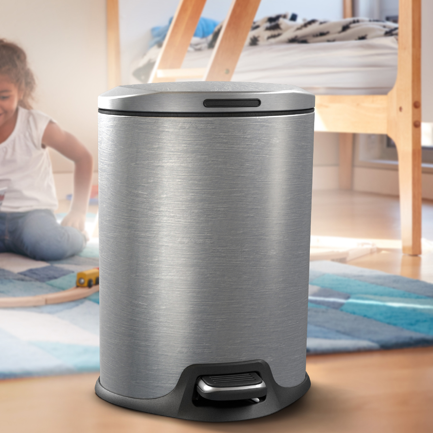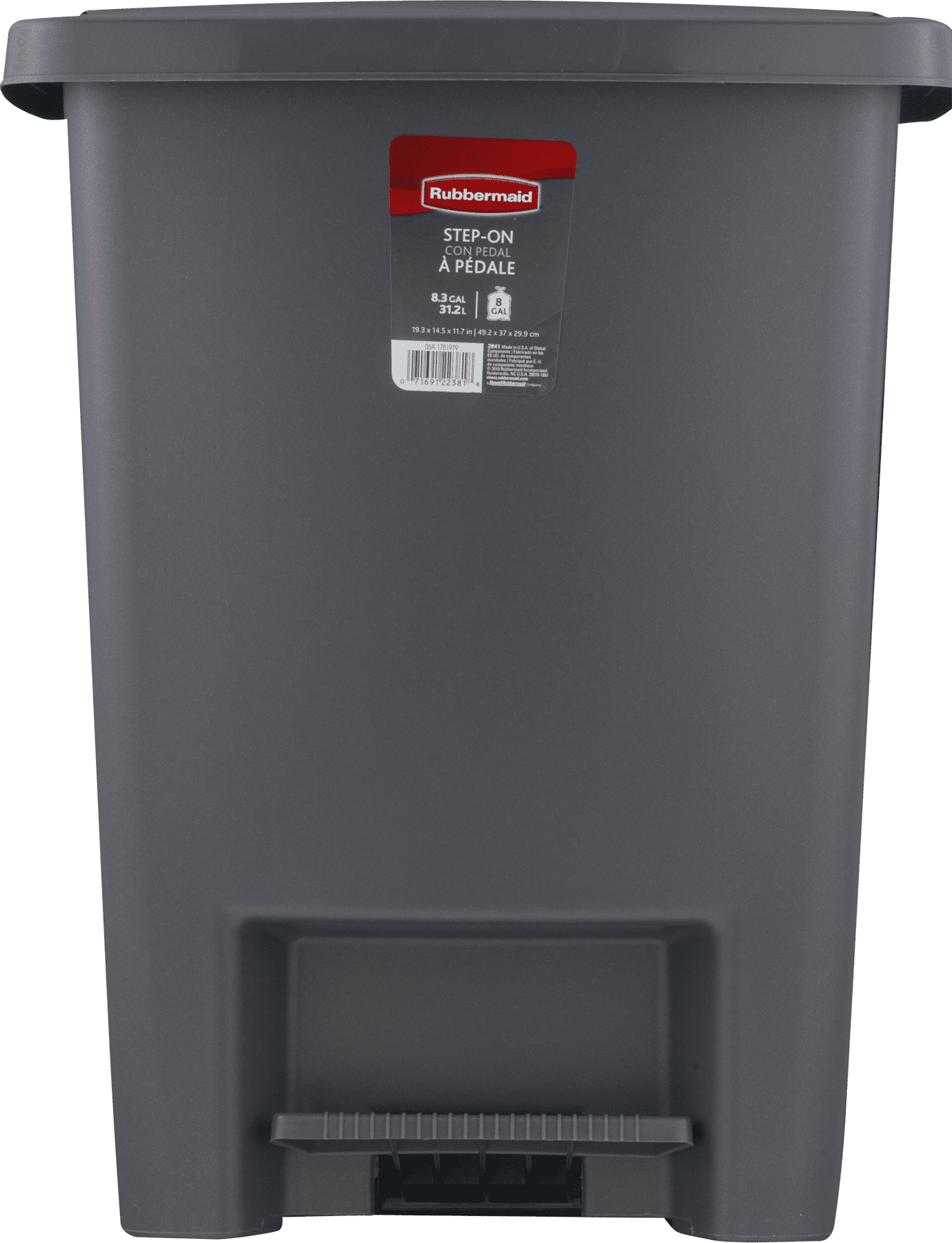 Rubbermaid 8.3 gal Step-on Plastic Kitchen Trash Can. Metallic Garbage Can
