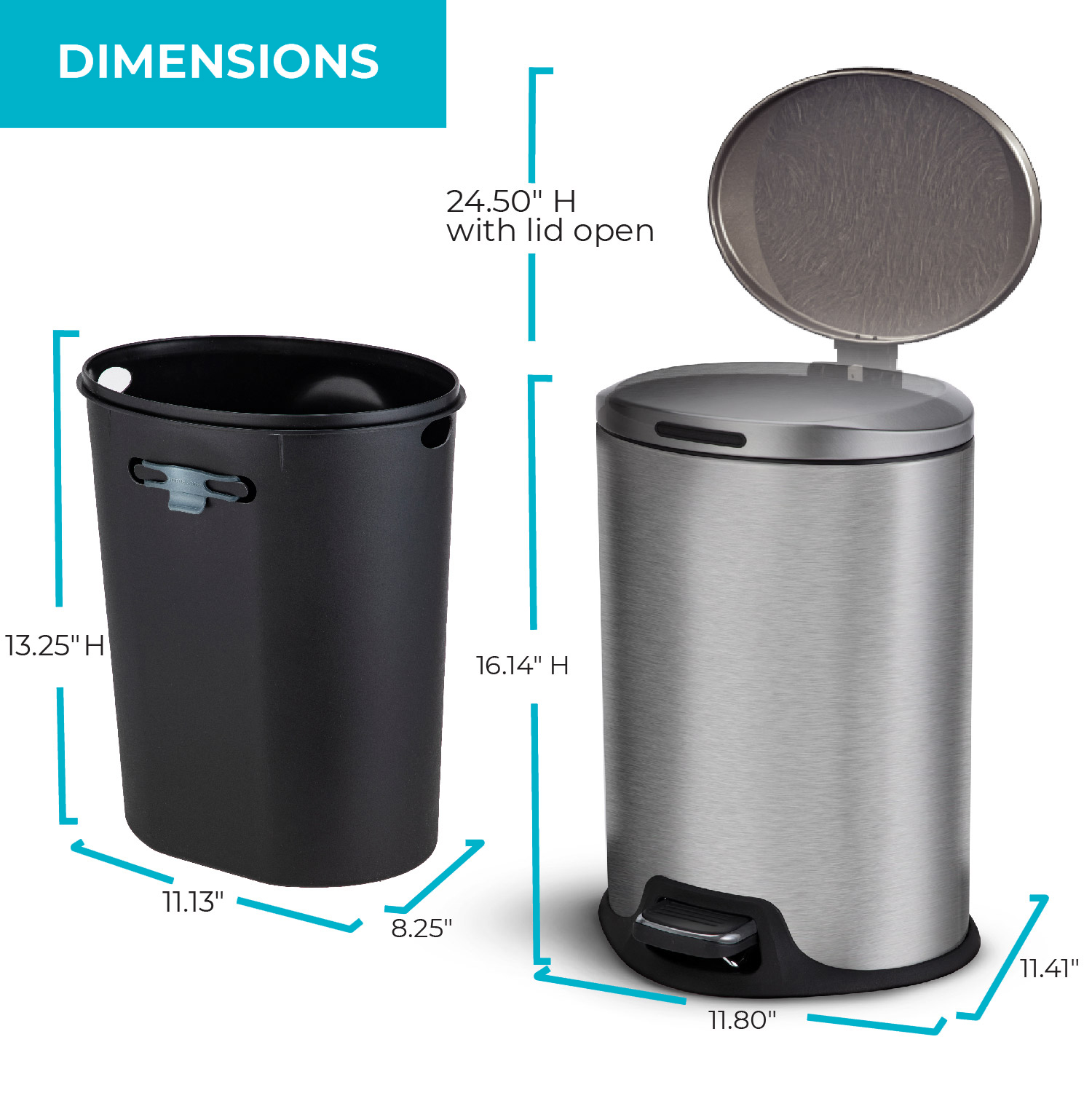 Home Zone Living 3 Gallon Kitchen Wastebasket. Stainless Steel. 12 Liter