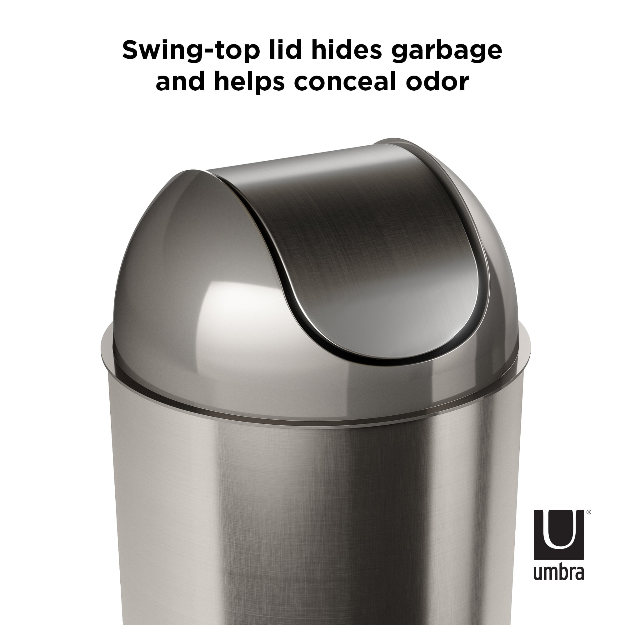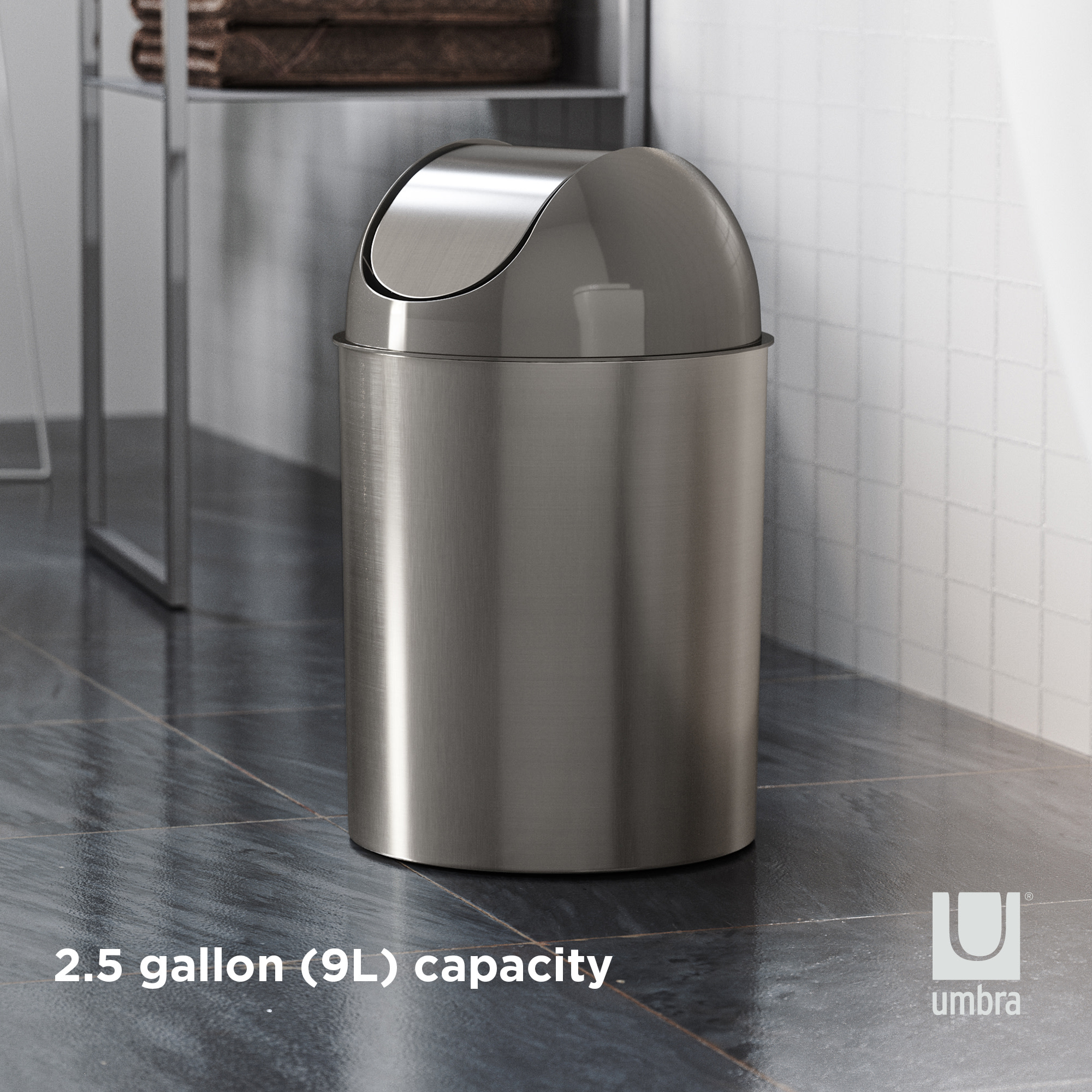Umbra 2.5 gal Mezzo Plastic Swing Top Lid Bathroom Trash Can. Silver