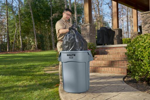 Rubbermaid 32 gal Brute Garage Trash Can with Lid. Grey Garbage Can. Crush Resistant Material