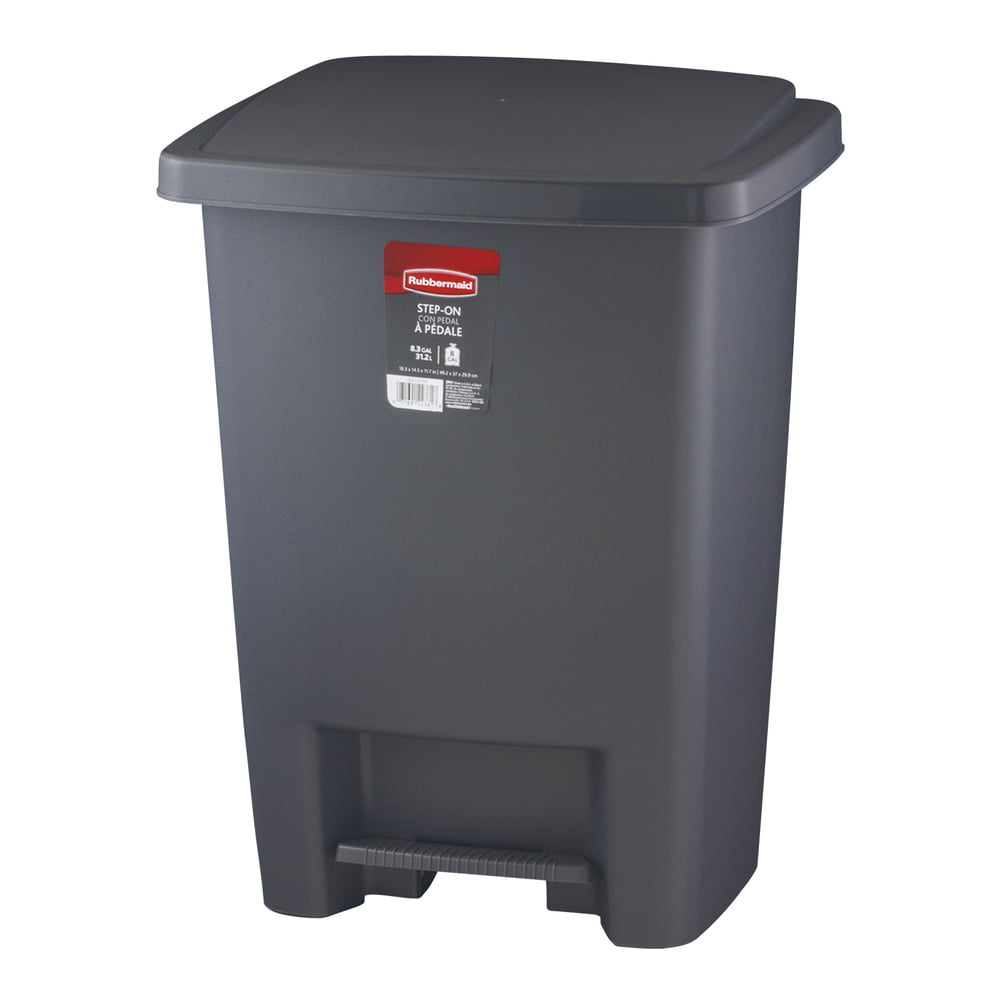 Rubbermaid 8.3 gal Step-on Plastic Kitchen Trash Can. Metallic
