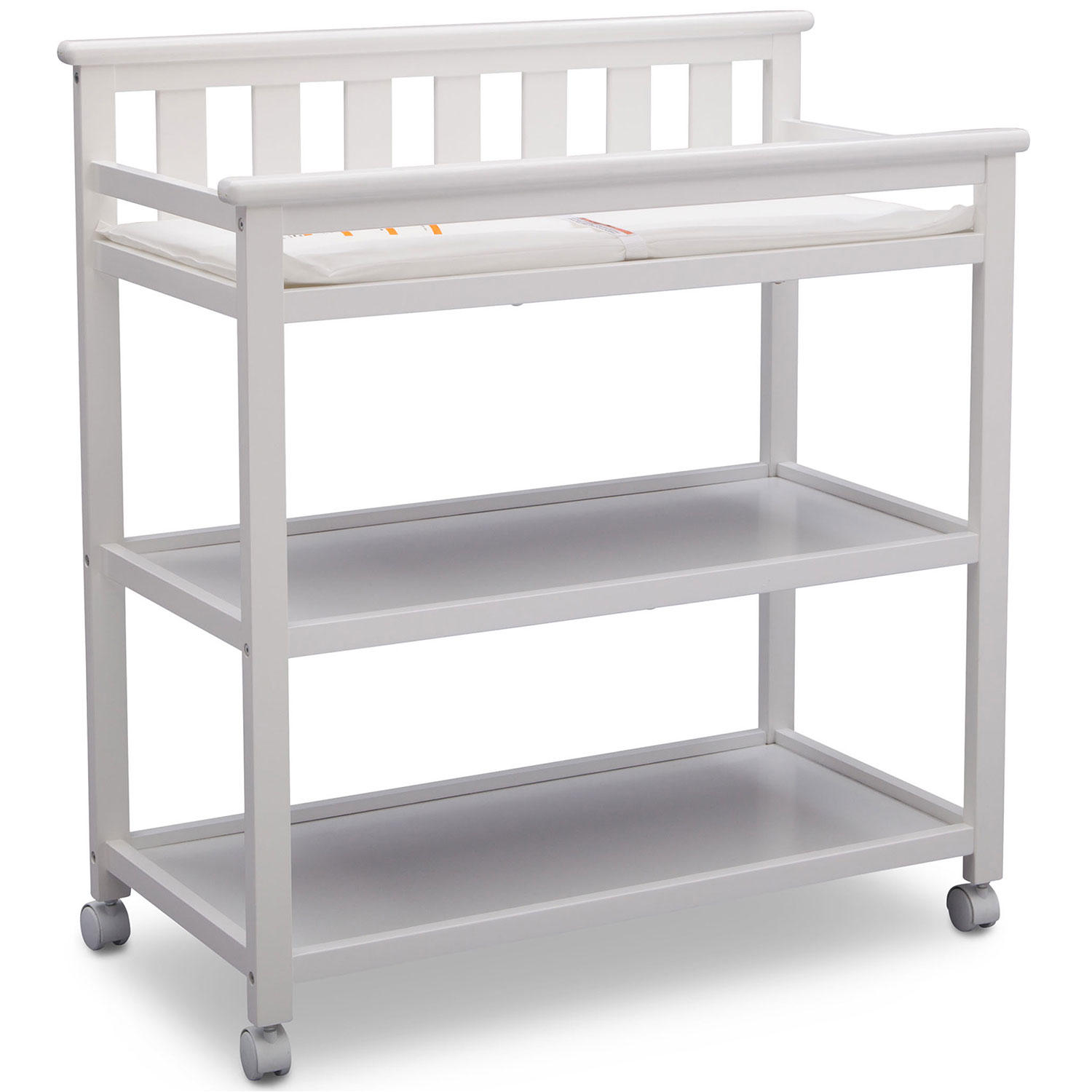 Delta Children Flat Top Changing Table with Wheels and Changing Pad - Greenguard Gold Certified. Bianca White