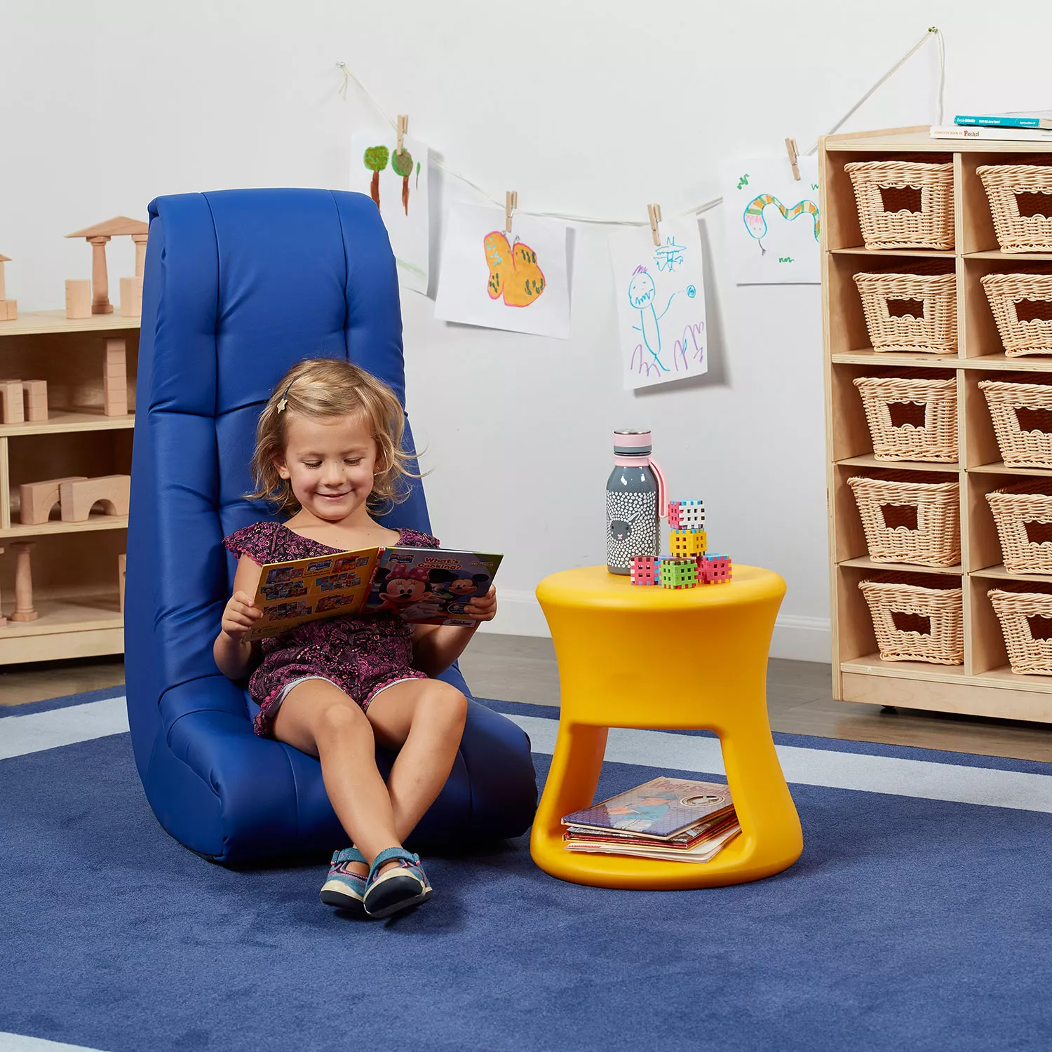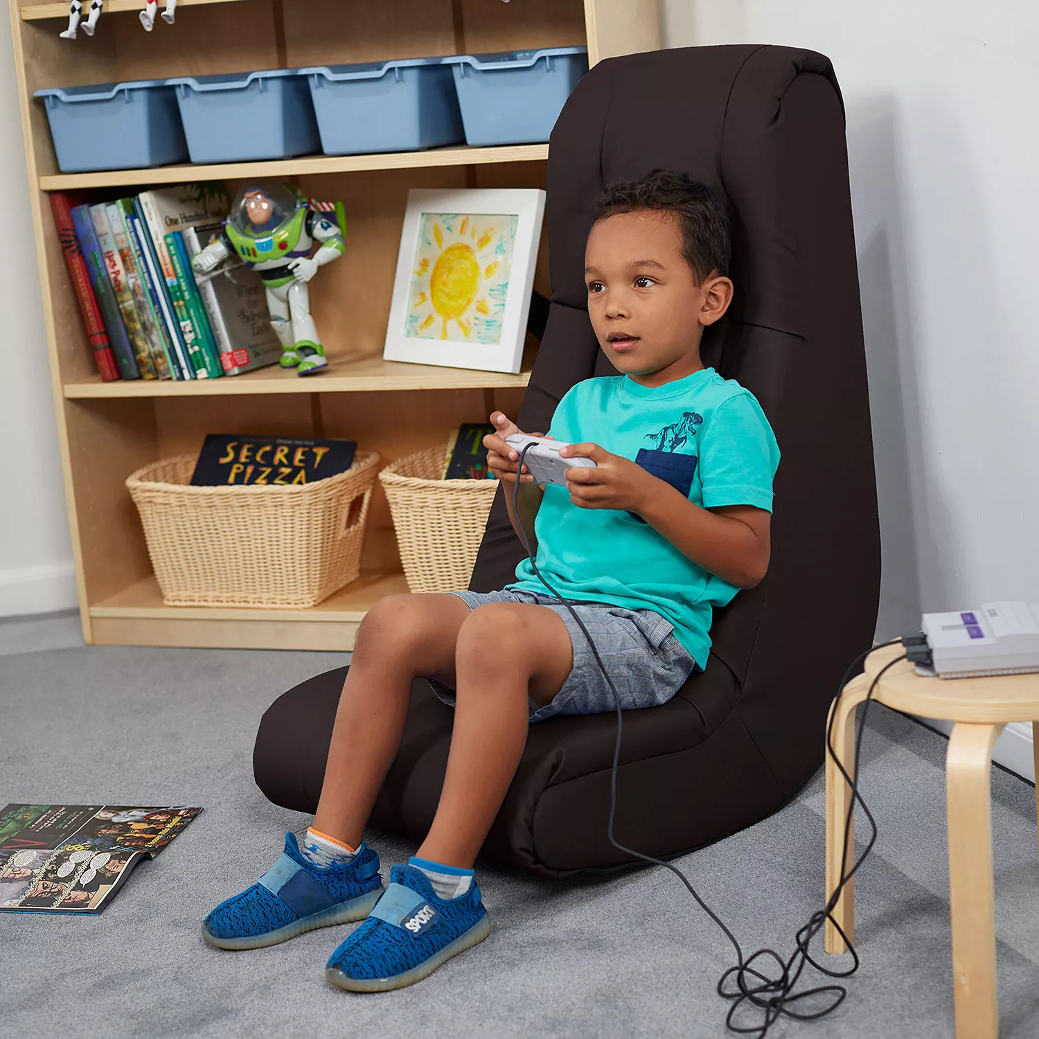Factory Direct Partners - Soft Floor Rocker - Cushioned Ground Chair for Kids Teens and Adults - Great for Reading. Gaming. Meditating. TV - Blue