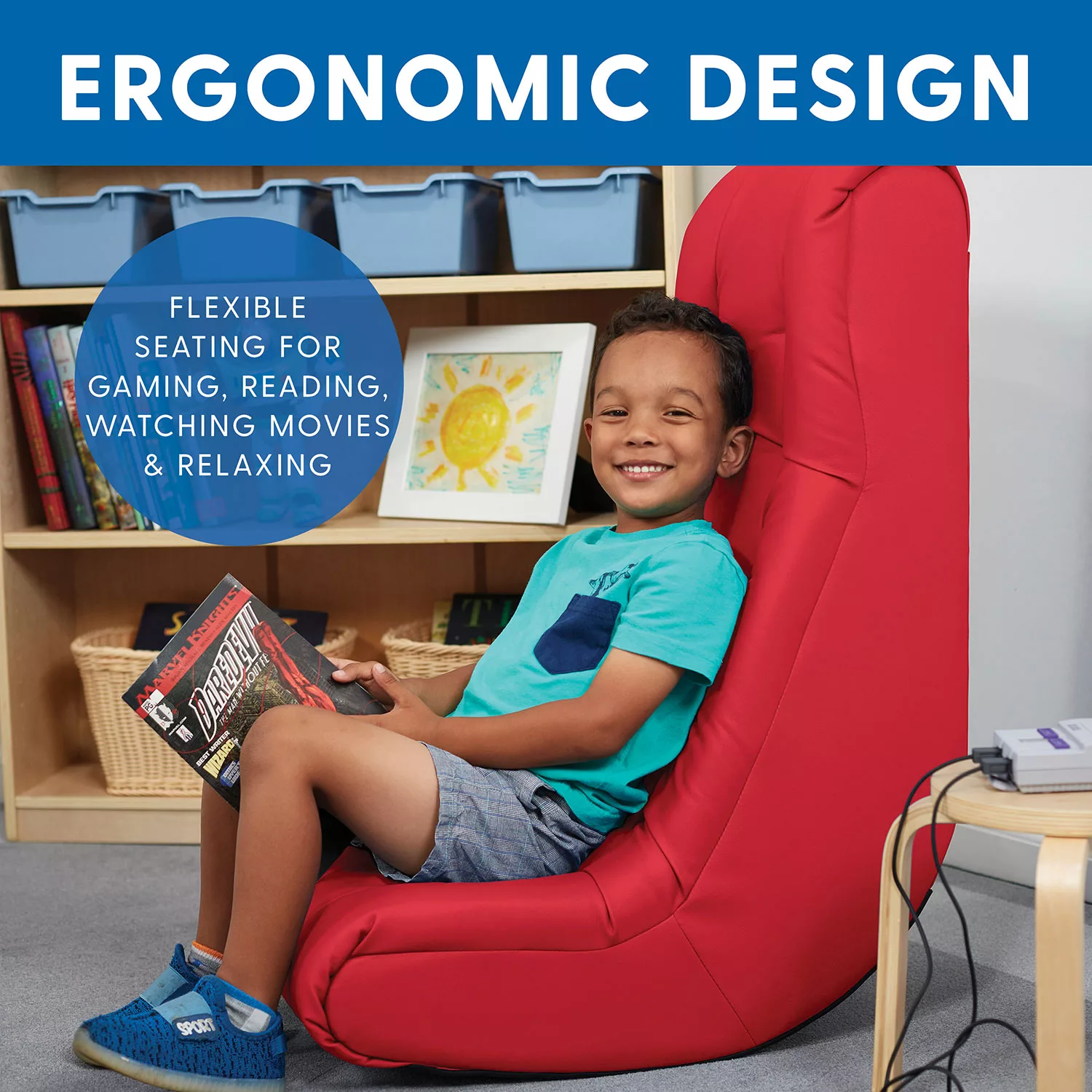 Factory Direct Partners – Soft Floor Rocker – Cushioned Ground Chair for Kids Teens and Adults – Great for Reading. Gaming. Meditating. TV – Red