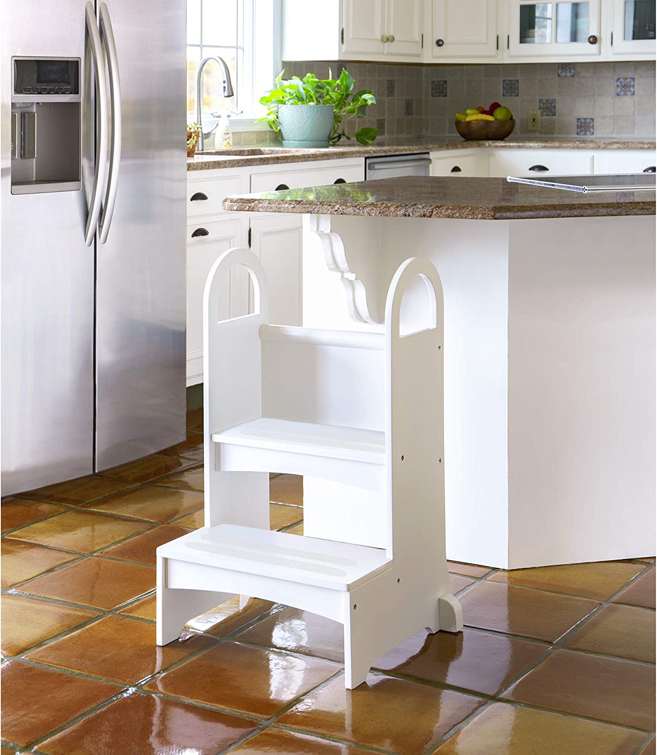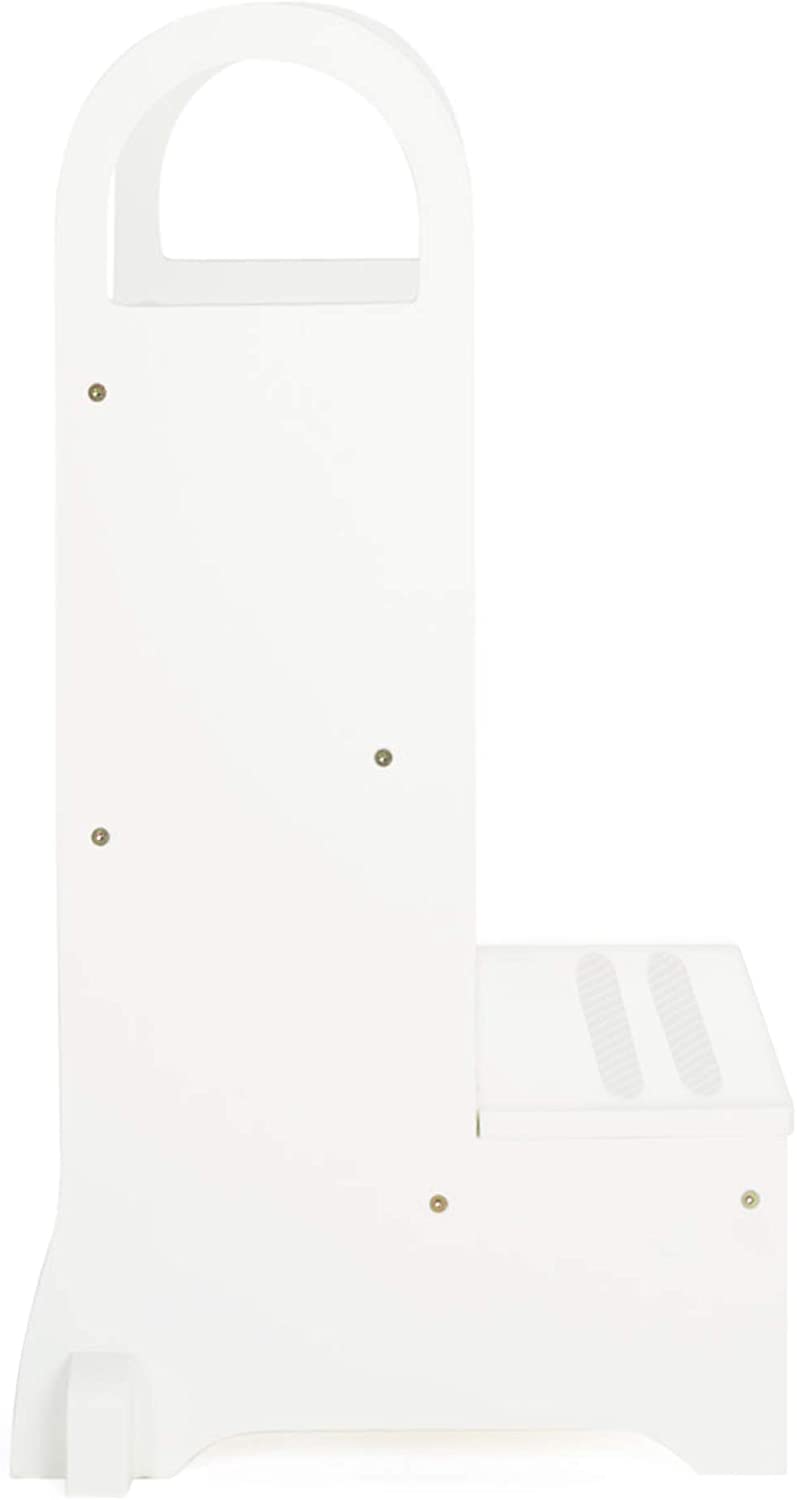 Guidecraft Kitchen Helper High-Rise Step-Up - White - Two Step Stool with Handles and Safety Non-Slip Treads and Anti-Tip Feet for Kids and Adults- Quality Wood Learning Furniture