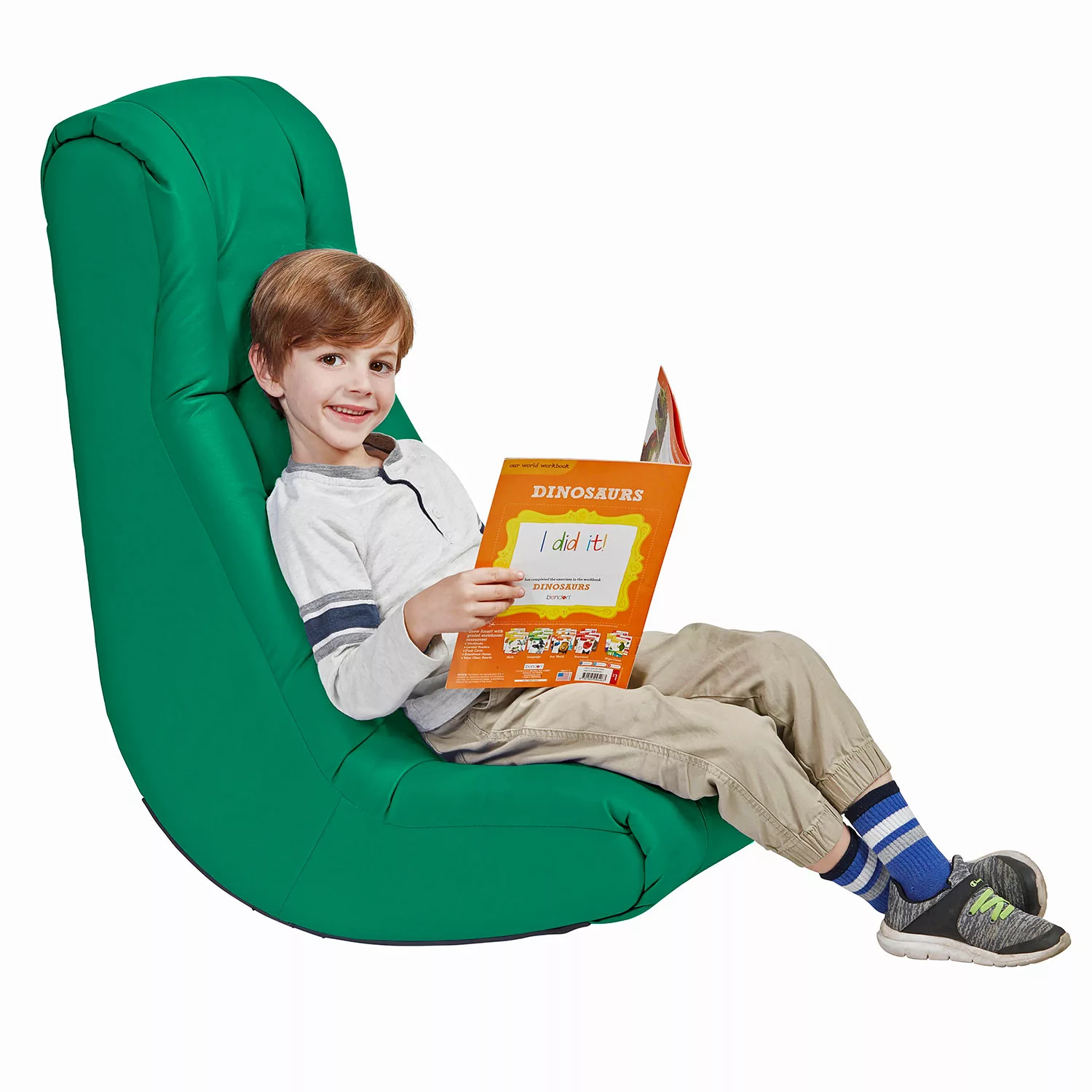 Factory Direct Partners - Soft Floor Rocker - Cushioned Ground Chair for Kids Teens and Adults - Great for Reading. Gaming. Meditating. TV - Green
