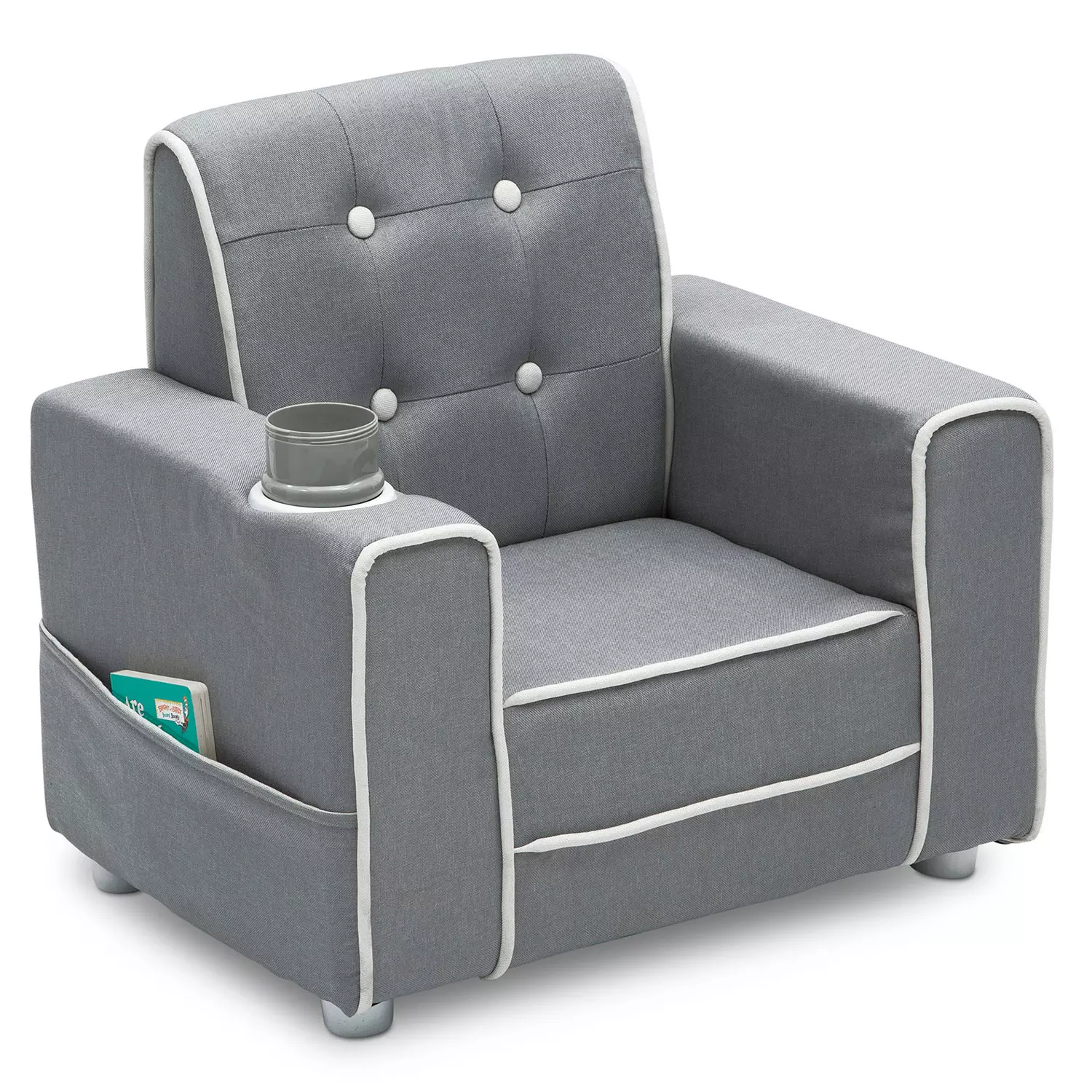 Delta Children Chelsea Kids- Upholstered Chair with Cup Holder. Soft Grey