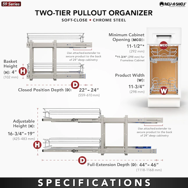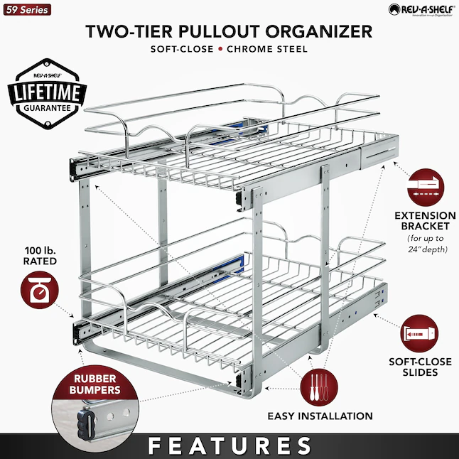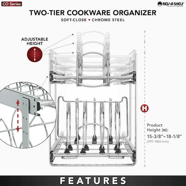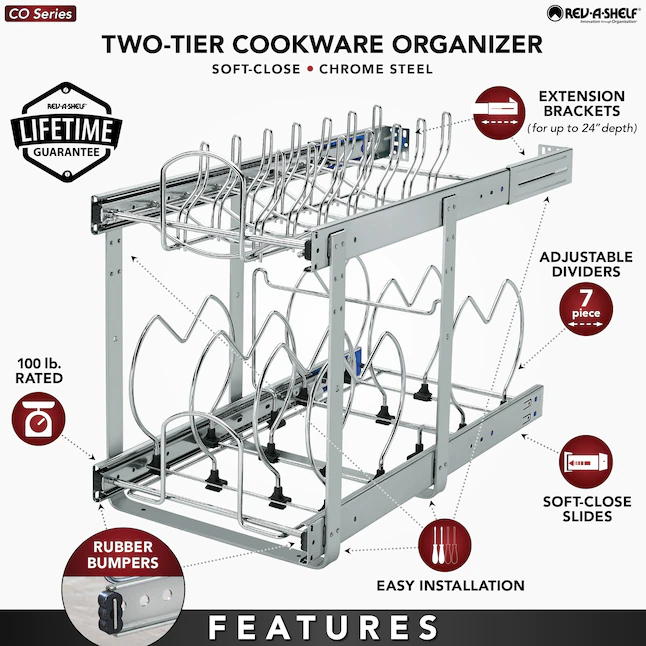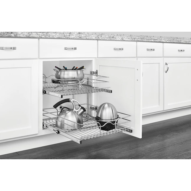 Rev-A-Shelf Two-Tier Cookware Organizer 11.75-in W x 18-in H 2-Tier Pull Out Metal Soft Close Baskets & Organizers