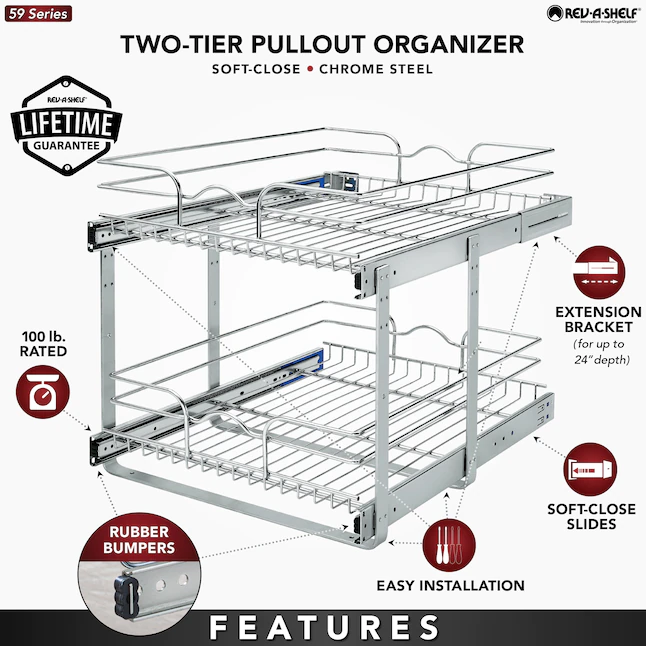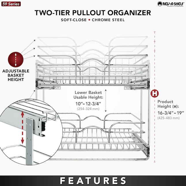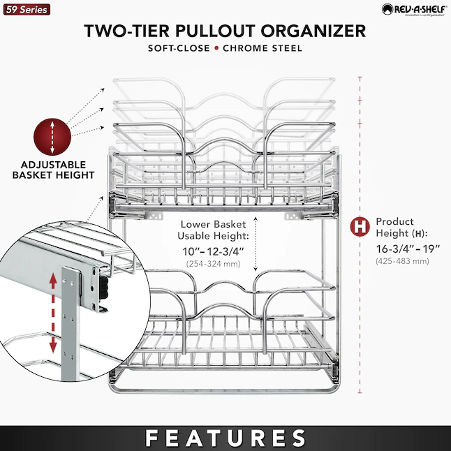 Rev-A-Shelf Two-Tier Pull-Out Baskets 14.75-in W x 19-in H 2-Tier Pull Out Metal Soft Close Baskets & Organizers
