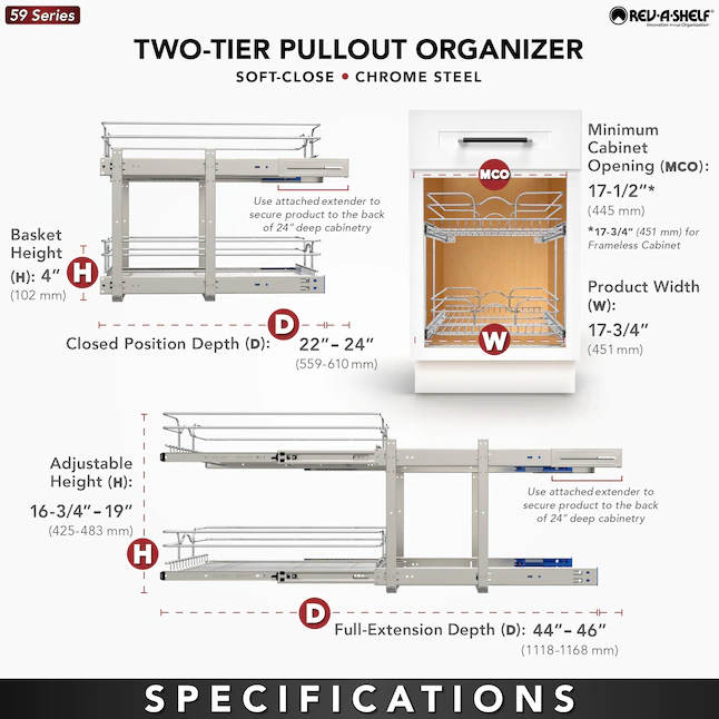 Rev-A-Shelf Two-Tier Pull-Out Baskets 17.75-in W x 19-in H 2-Tier Pull Out Metal Soft Close Baskets & Organizers