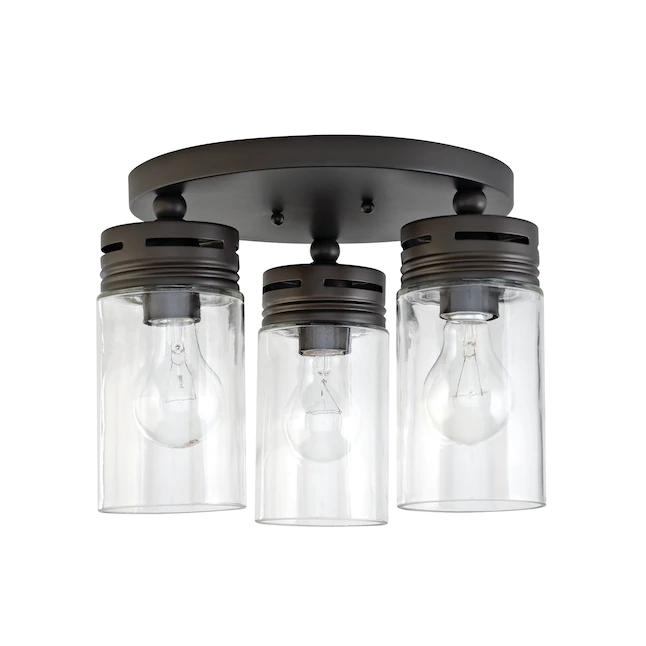 allen + roth Vallymede 3-Light 12-in Aged Bronze Incandescent Flush Mount Light