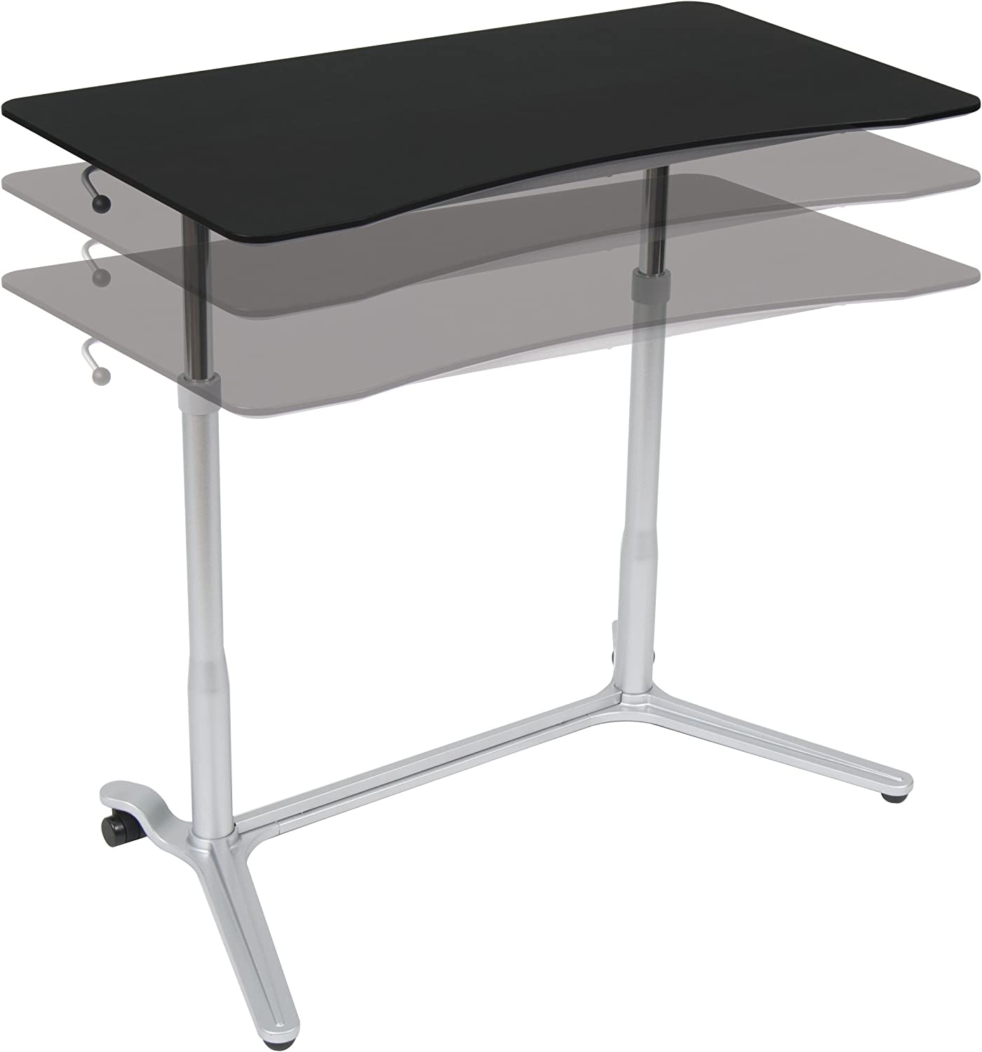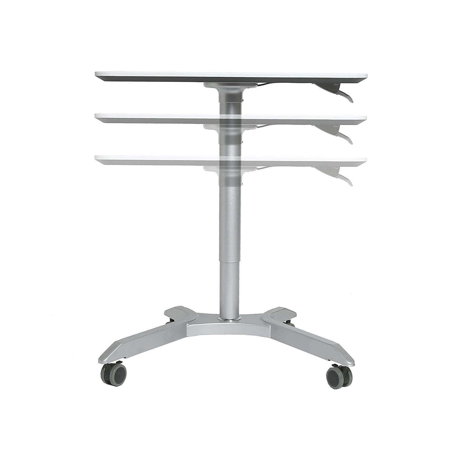 Seville Classics AIRLIFT XL 28″ Pneumatic Sit-Stand Adjustable Rolling Desk Cart. White Silver