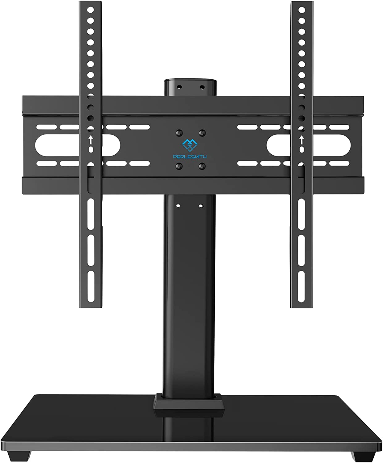 PERLESMITH Universal TV Stand - Table Top TV Stand for 37-55 inch LCD LED TVs - Height Adjustable TV Base Stand with Tempered Glass Base & Wire Management. VESA 400x400mm