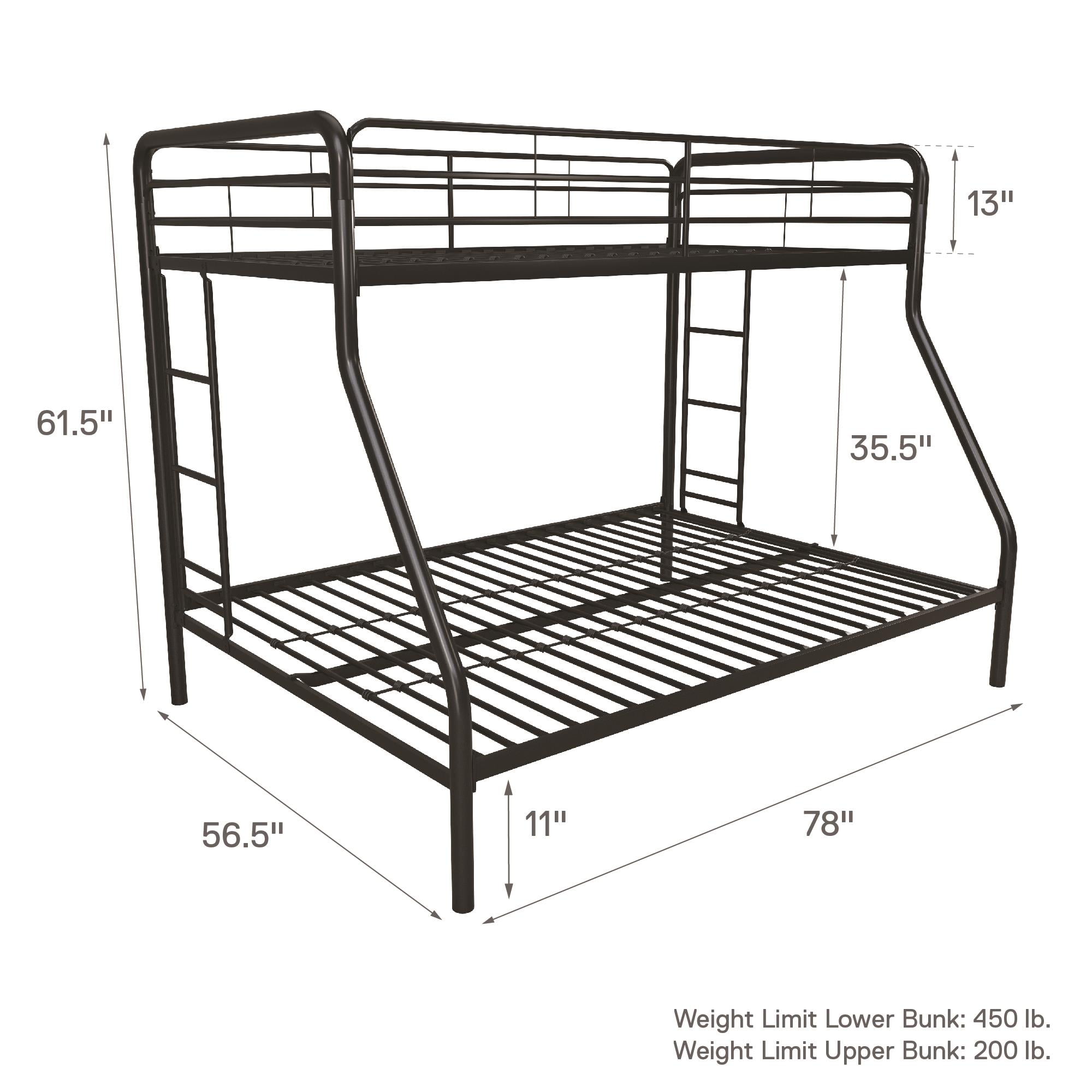 DHP Dusty Twin over Full Metal Bunk Bed with Secured Ladders. Black