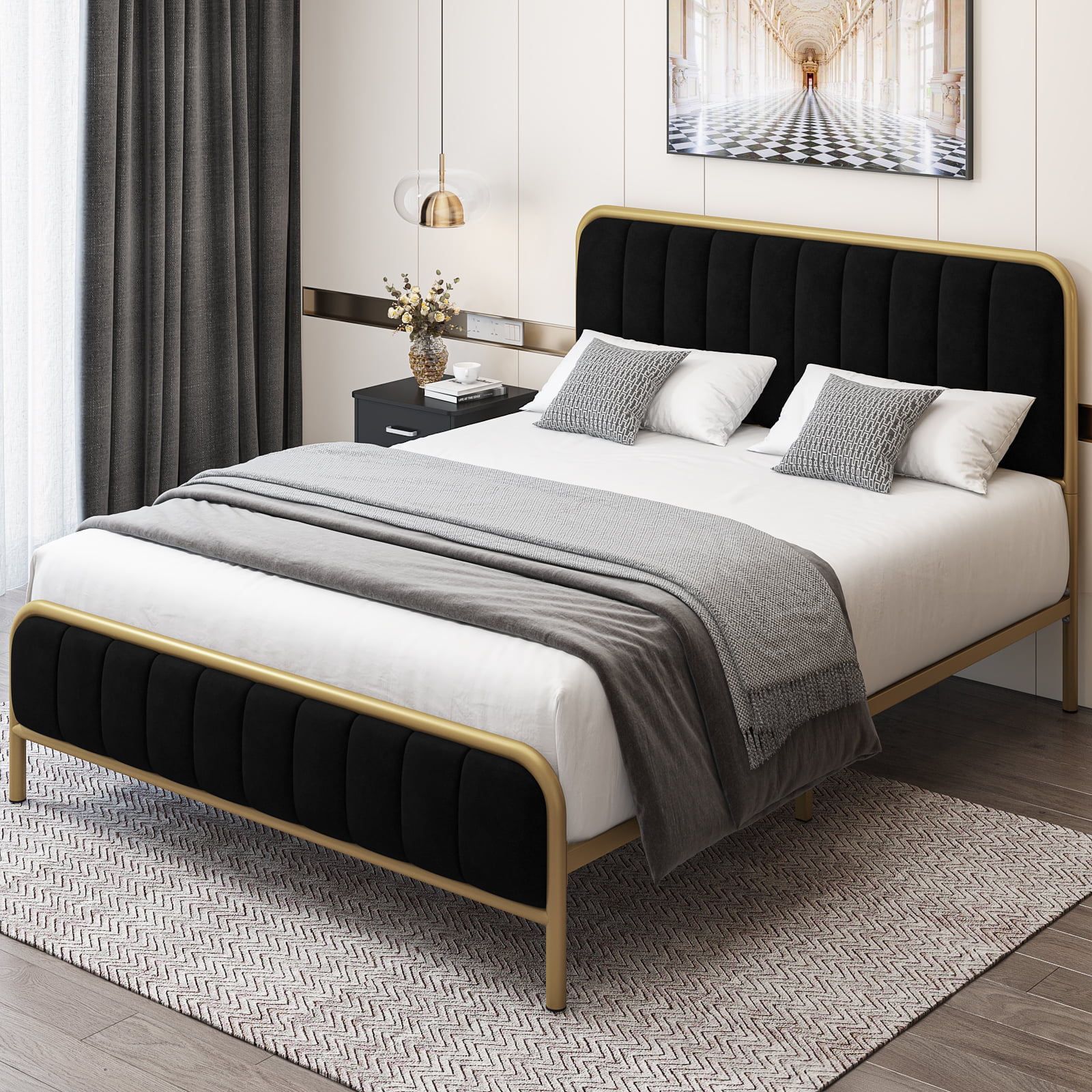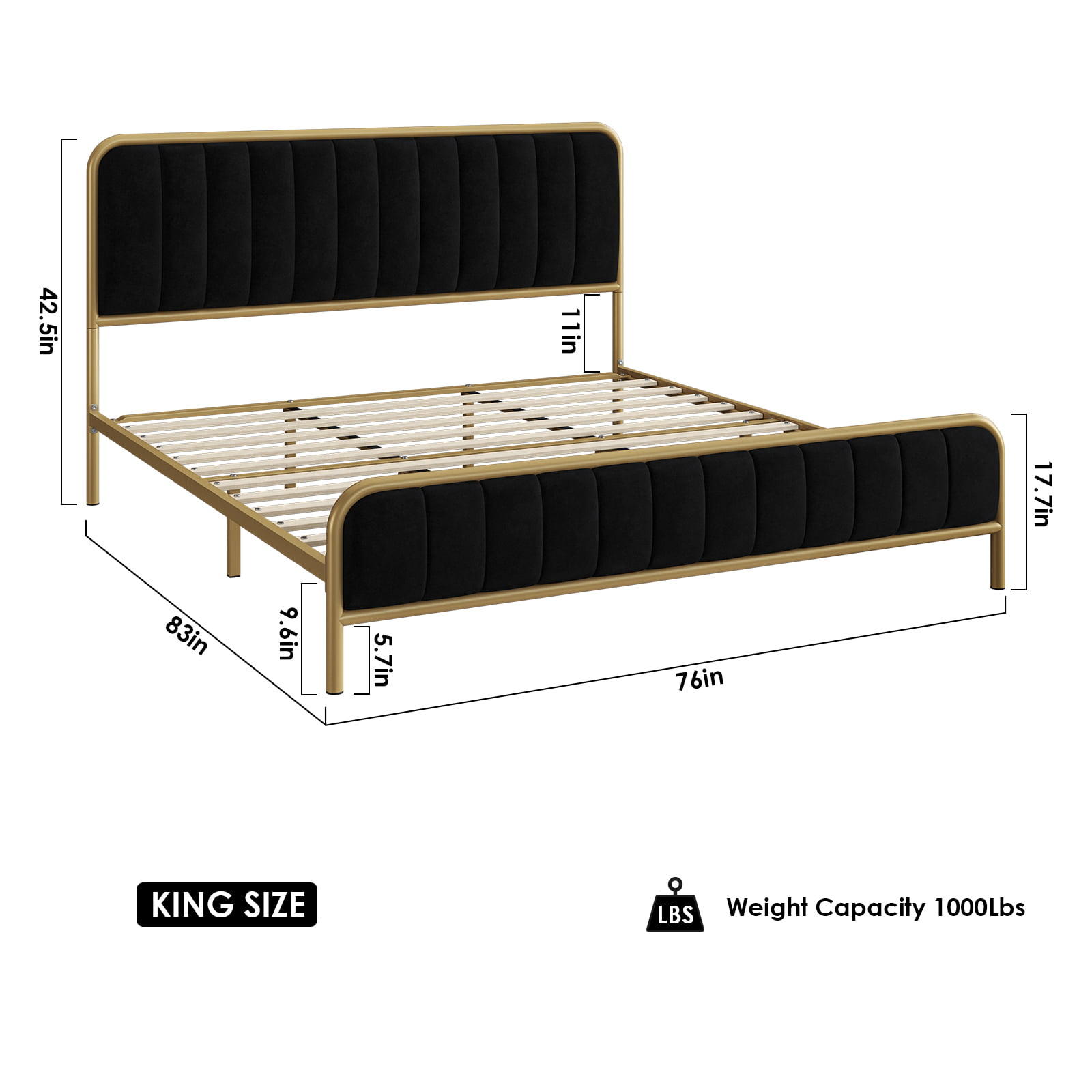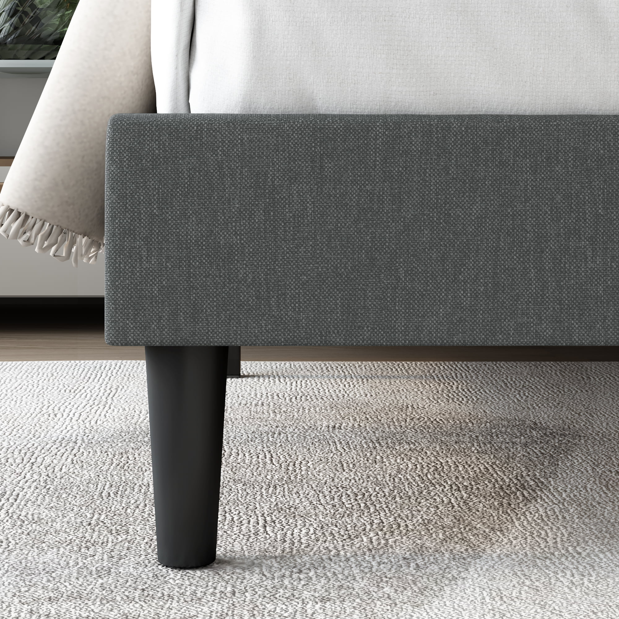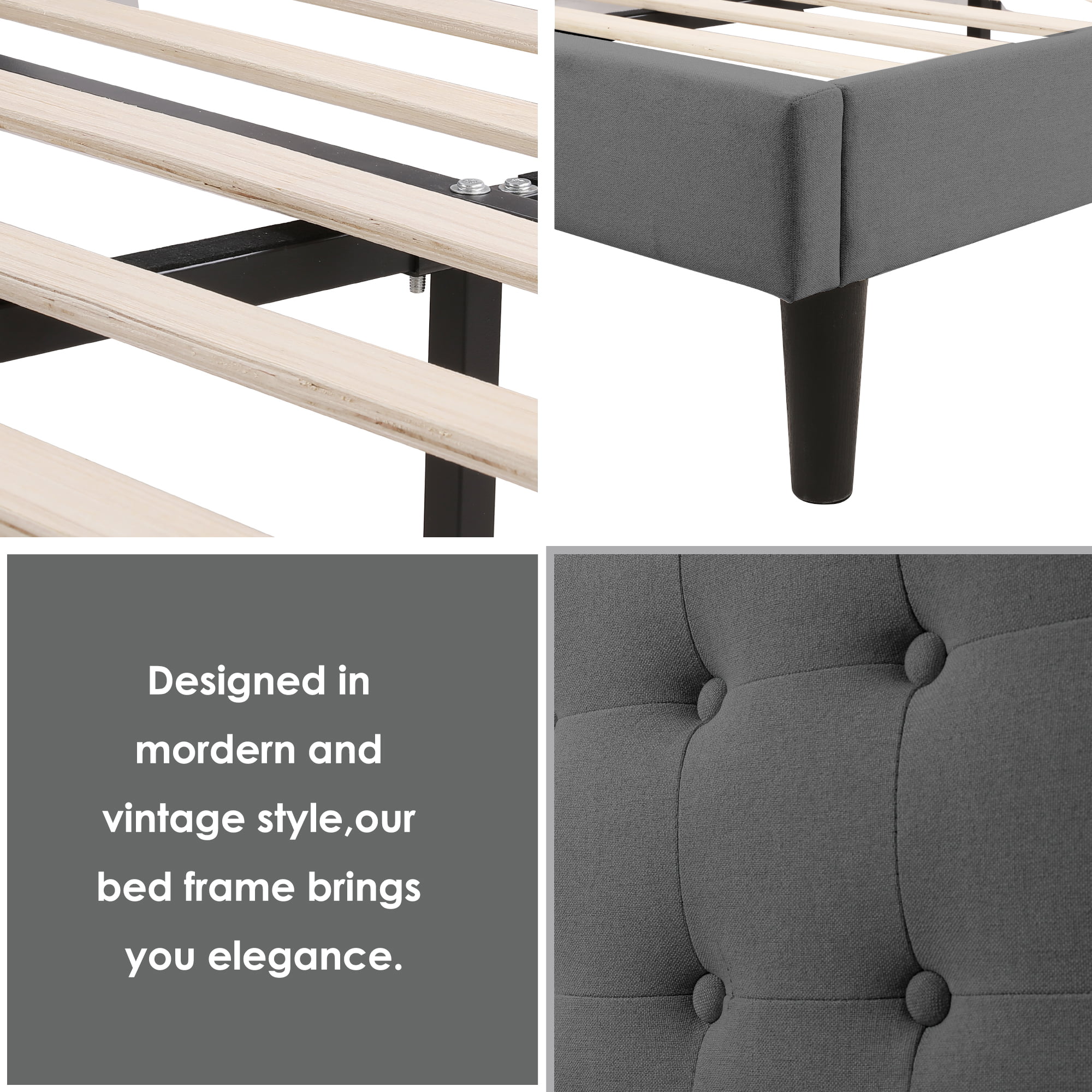 Homfa King Bed Frame. Button Tufted Upholstered Platform with Adjustable Headboard. Dark Grey