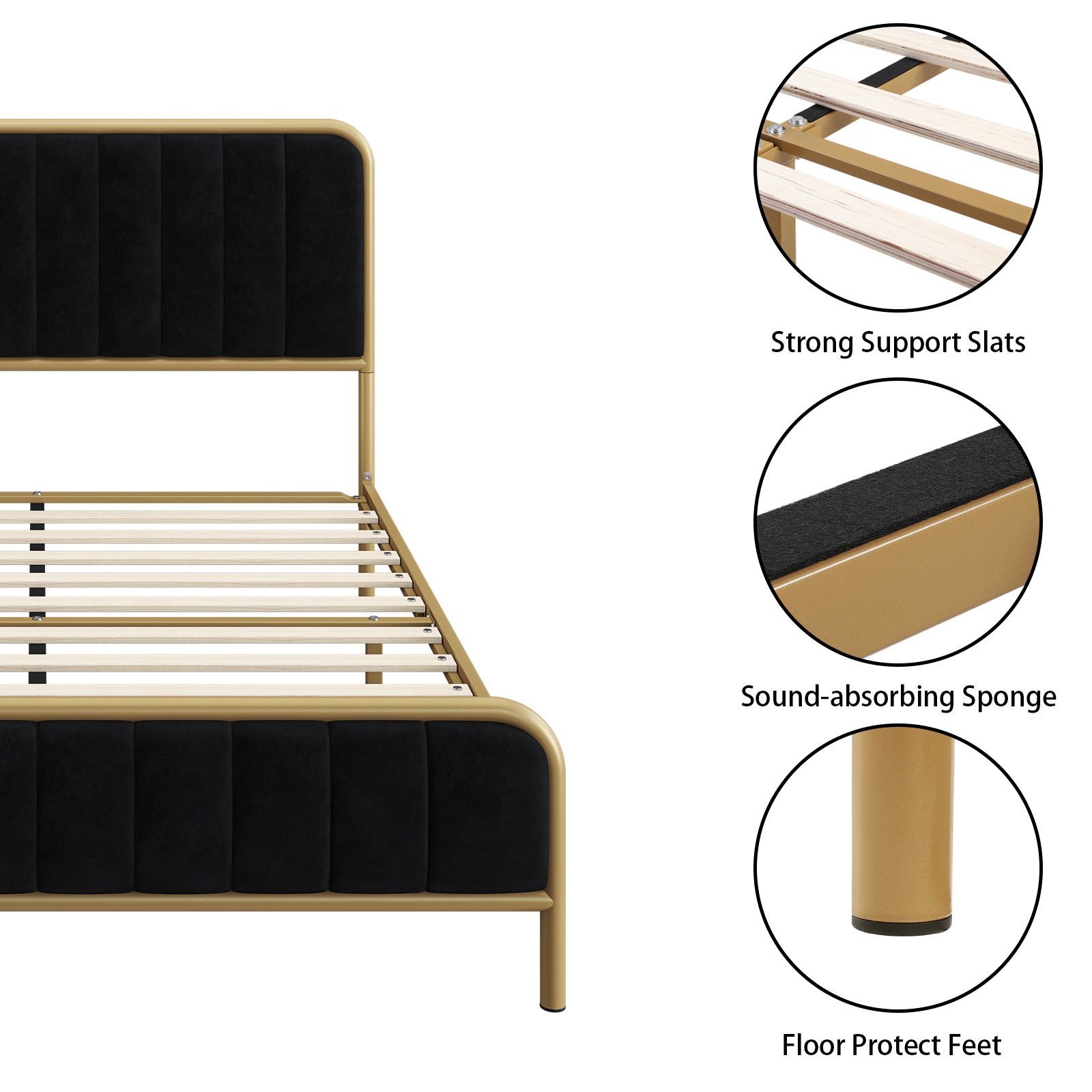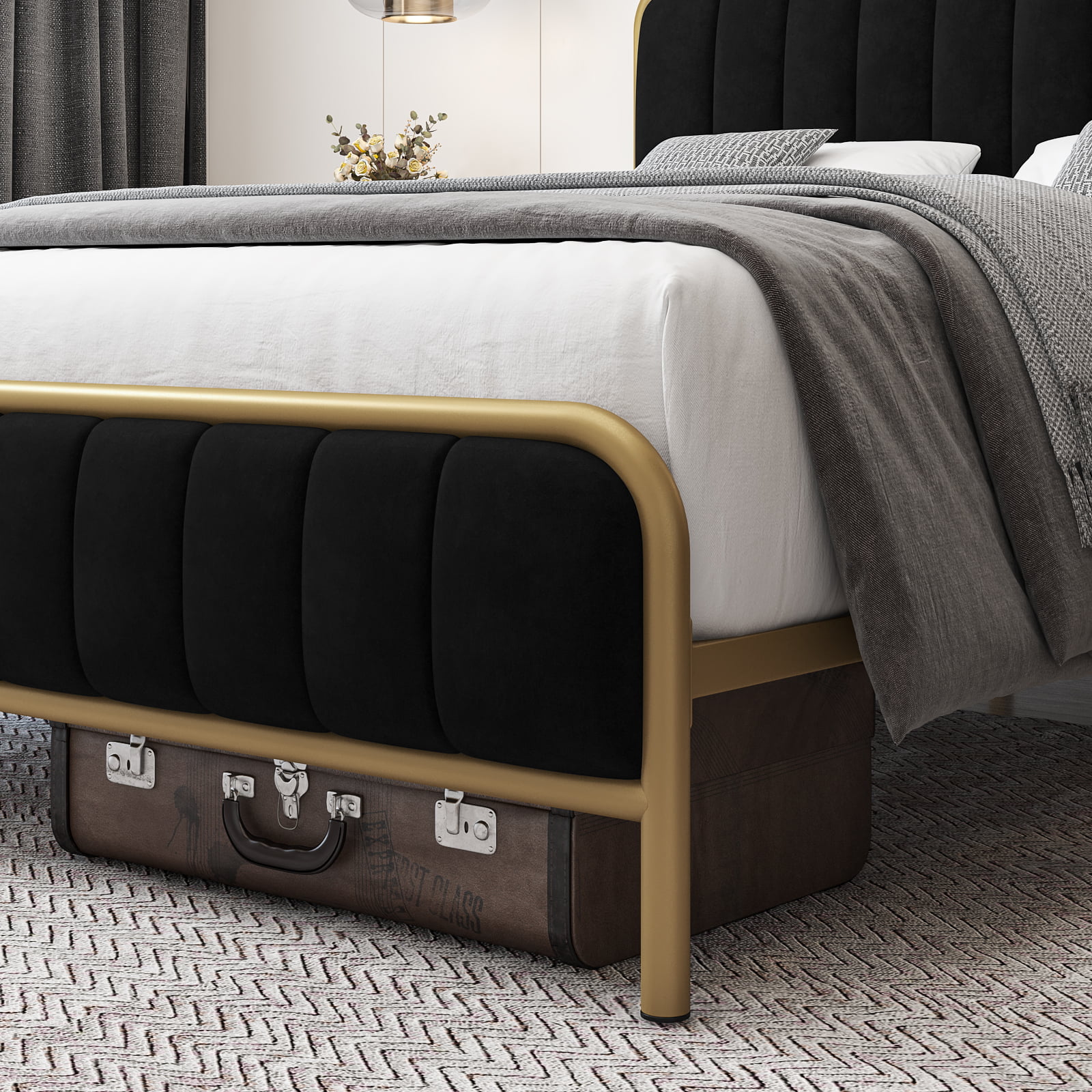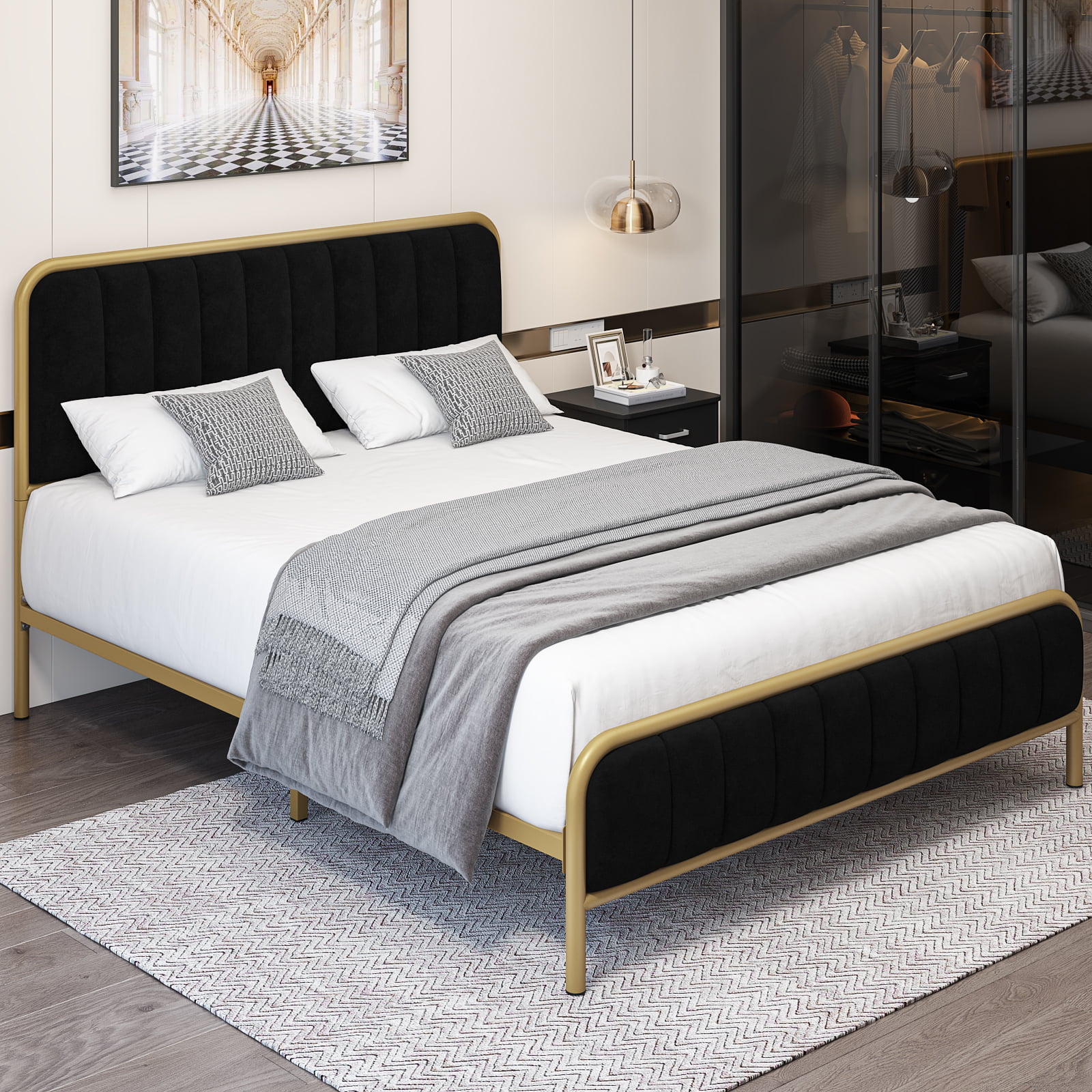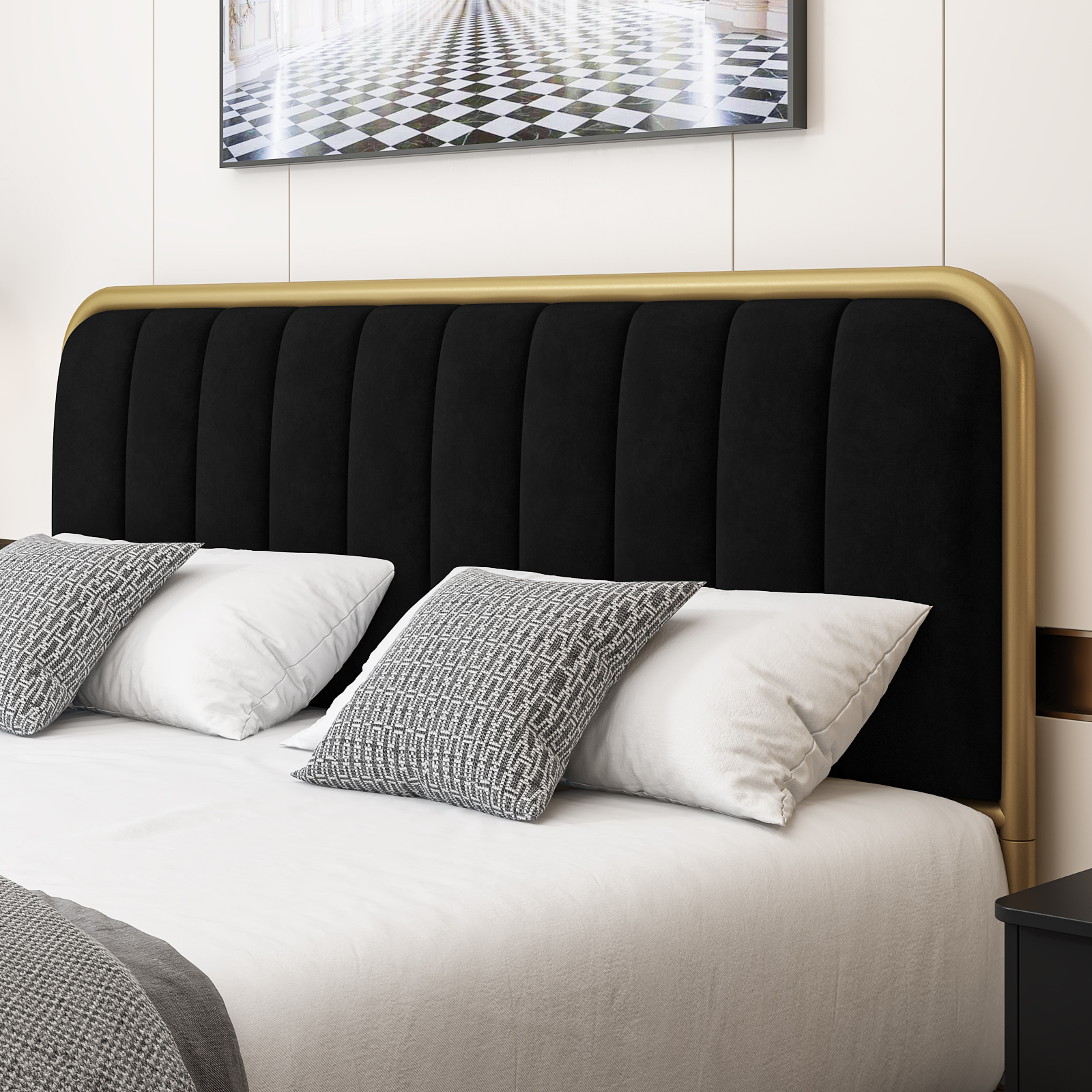 Homfa King Bed Frame. Button Tufted Upholstered Platform with Adjustable Headboard. Dark Grey