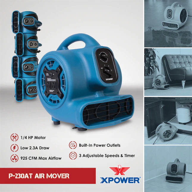 XPOWER P-230AT 1/4-HP 925-CFM Centrifugal Daisy Chain Compatible Blower Fan Timer