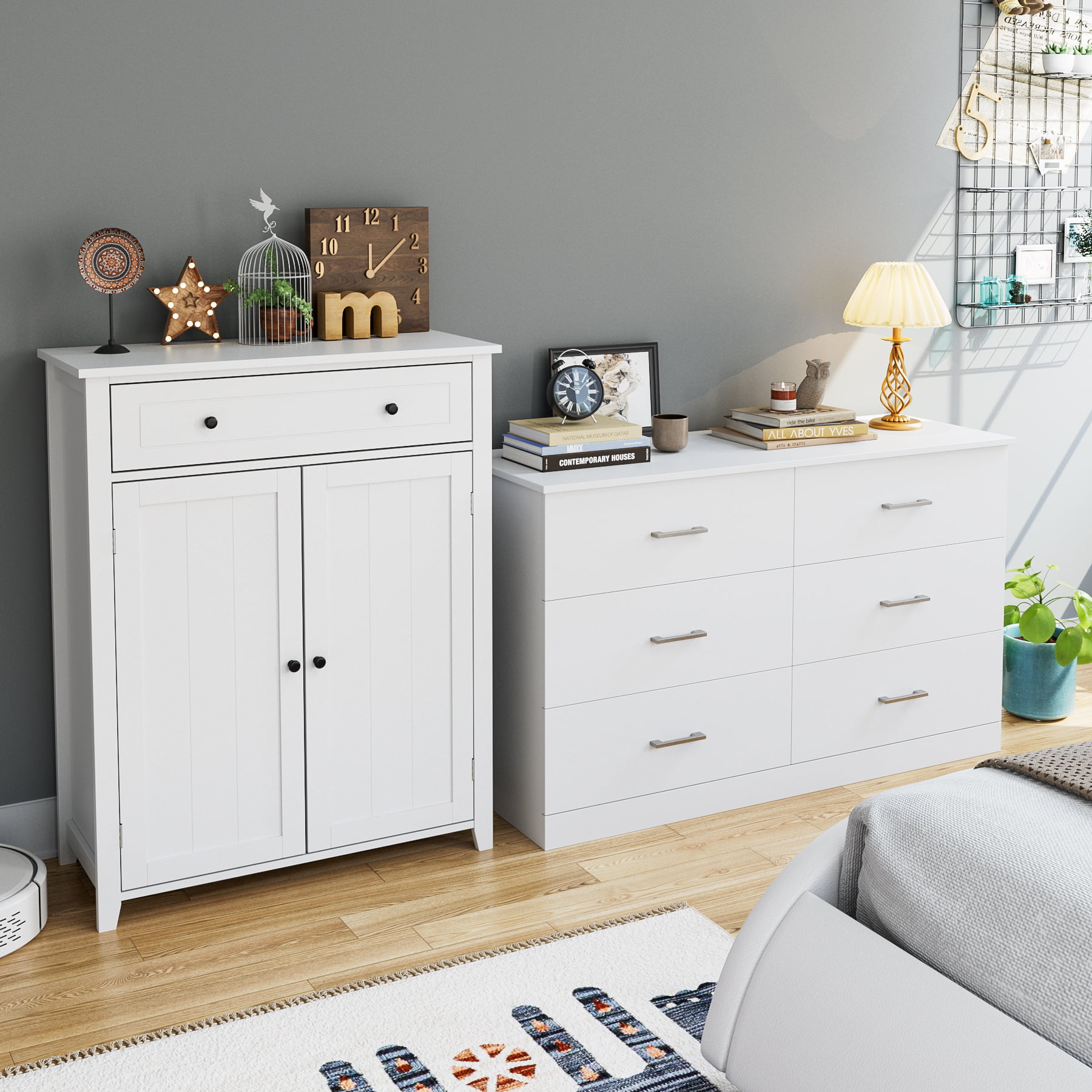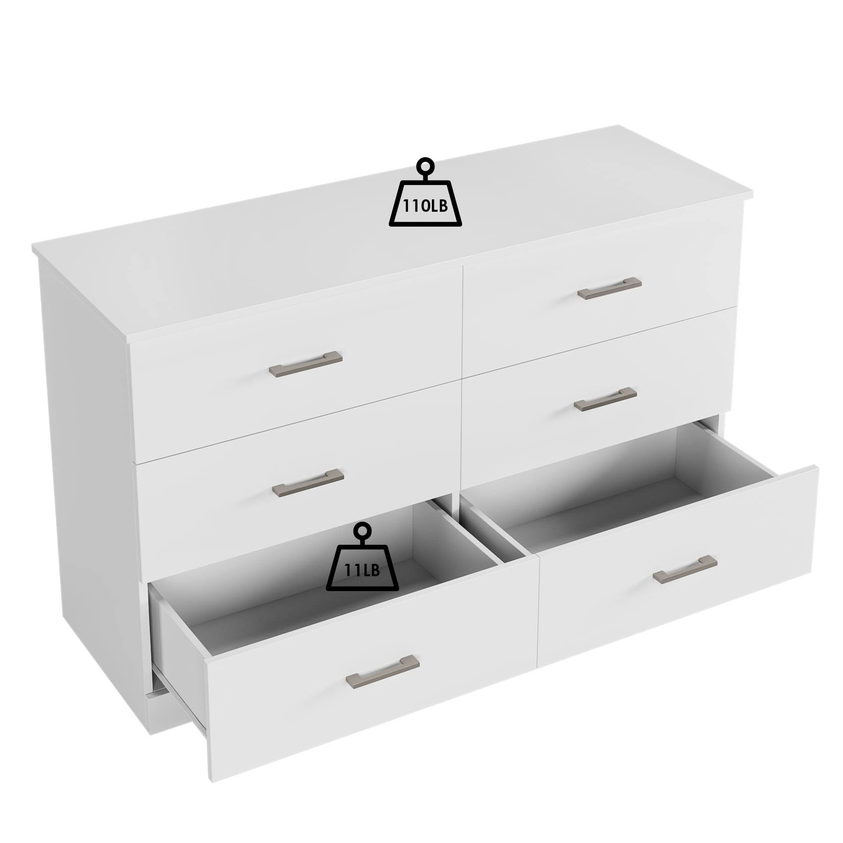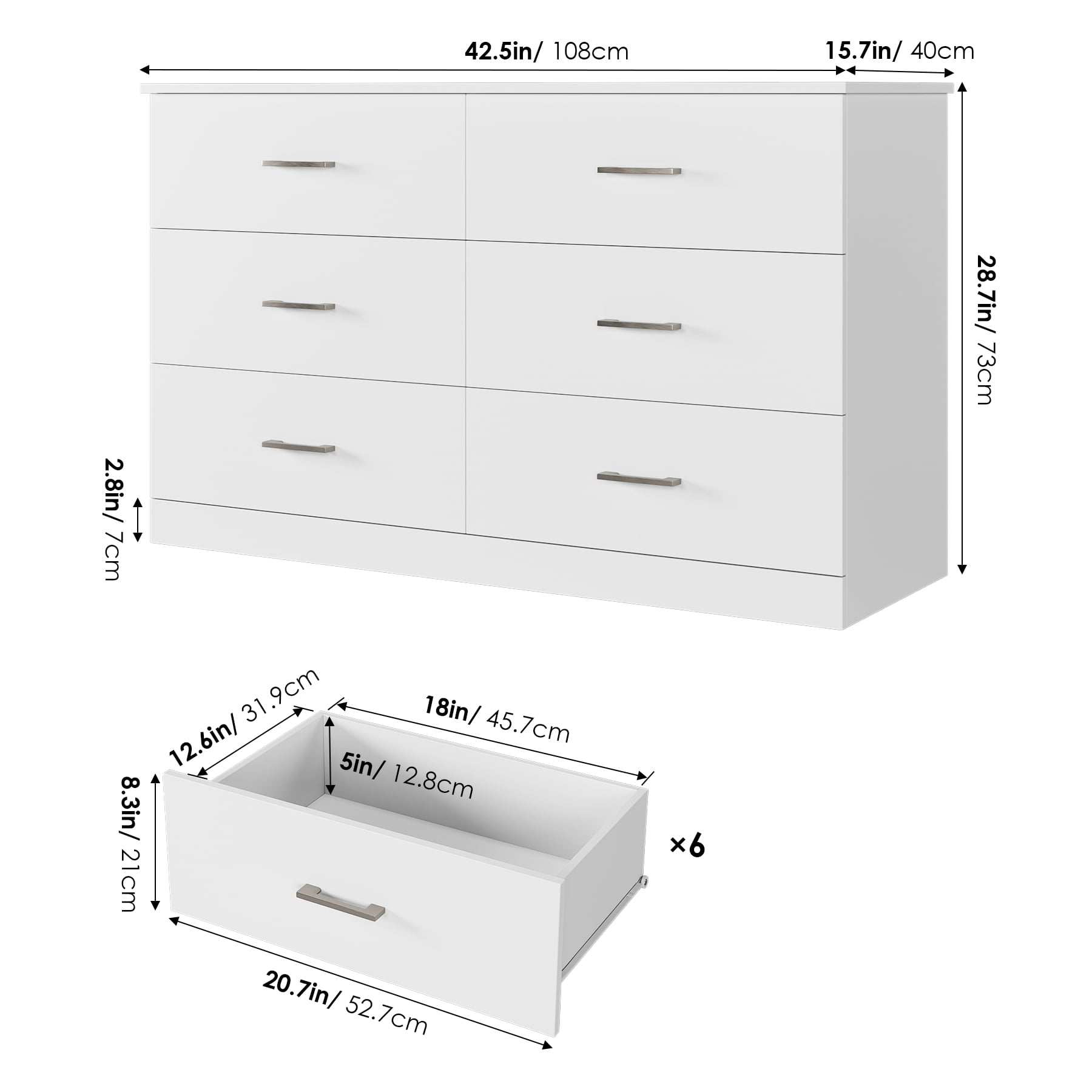Homfa 6 Drawer White Double Dresser. Wood Storage Cabinet with Easy Pull Out Handles for Living Room. Chest of Drawers for Bedroom